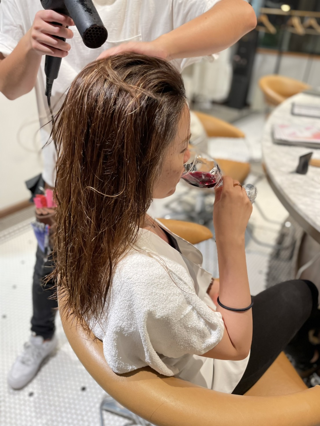 施術中に提供するドリンクは、カフェ「BROOKLYNROASTINGCOMPANY」で採用しているコーヒーを挽き立てで提供するほか、8種類のフレーバーから選択できる「TWINIGS」の紅茶、さらに、赤・白のワインも提供。ナッツやチーズなども揃え、お客様はまるでカフェやバーにいるかのようにリラックスした状態で施術を受けることができます。