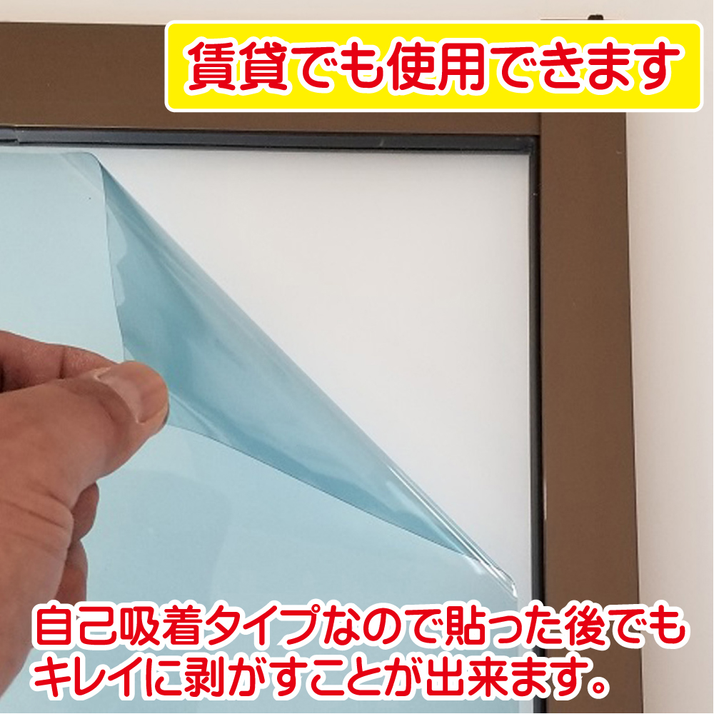 ①水だけでガラスに貼れる自己吸着タイプの遮熱シートです。