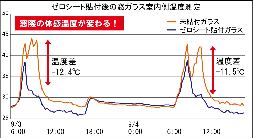 DIYで貼ってもプロが施工する遮熱商品同等の遮熱効果が体感できます。