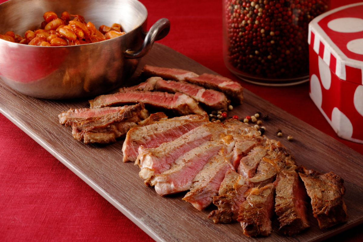 ビーフステーキ ベイクドビーンズ添え