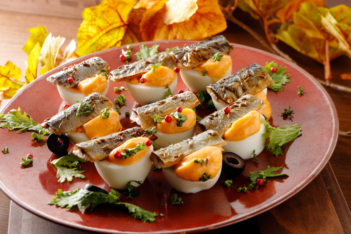 クミンシードで香り付けし、脂ののった焼きサンマをボイルドエッグでサラダ仕立てに。