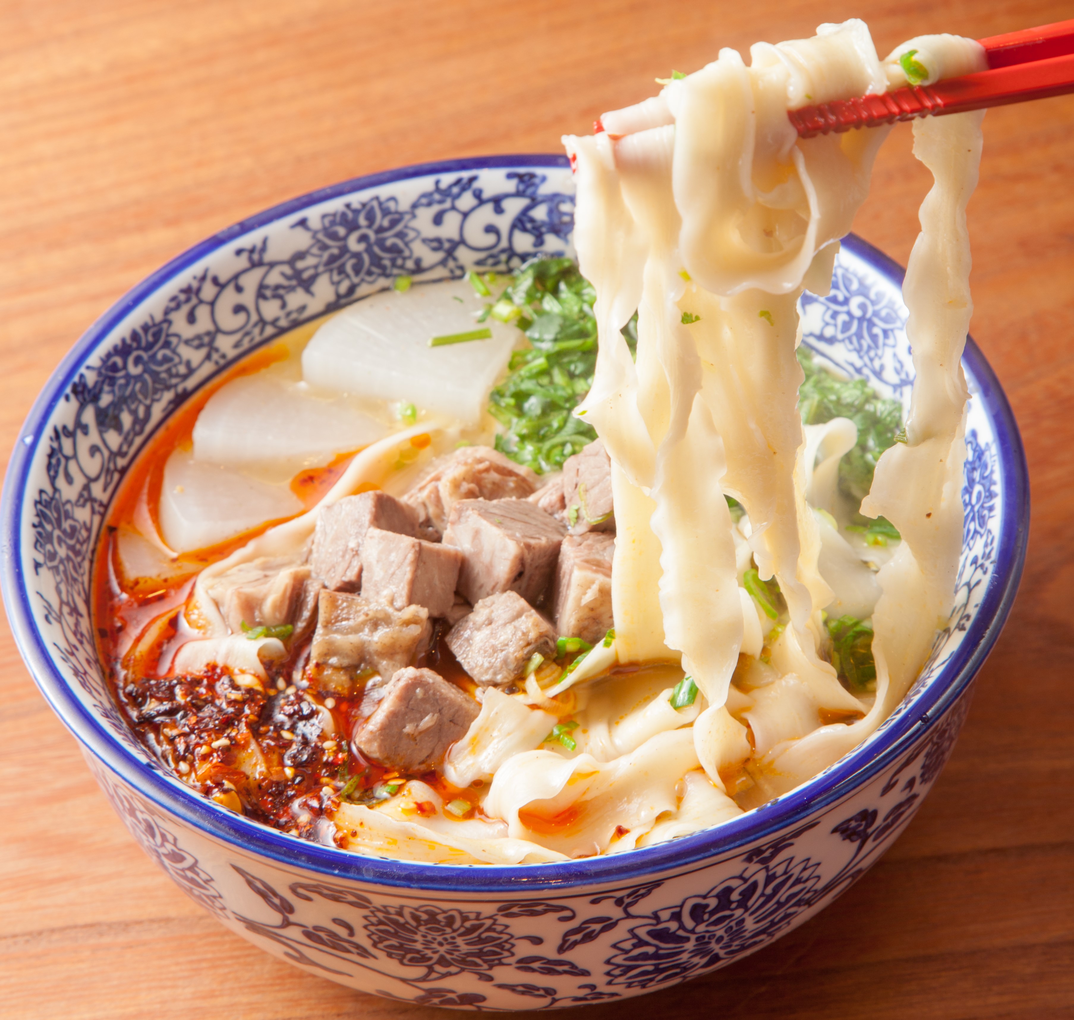 「中国十大拉麺」の一つにも選ばれている蘭州ラーメンは、中国の西北地方にある甘粛省の州都「蘭州」の昔ながらのラーメン。19種類の香辛料と牛骨を煮込んだコクのあるスープと手延べした麺の上にラー油やパクチーなどをのせるのが特徴で、ヤミツキになる方も続出中で、食べログやGoogleの口コミでも高評価をいただいております。