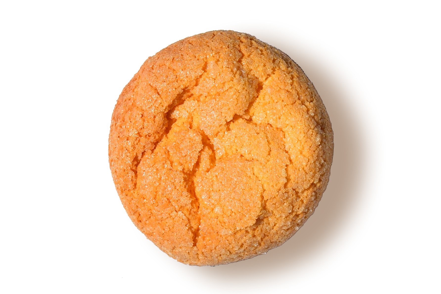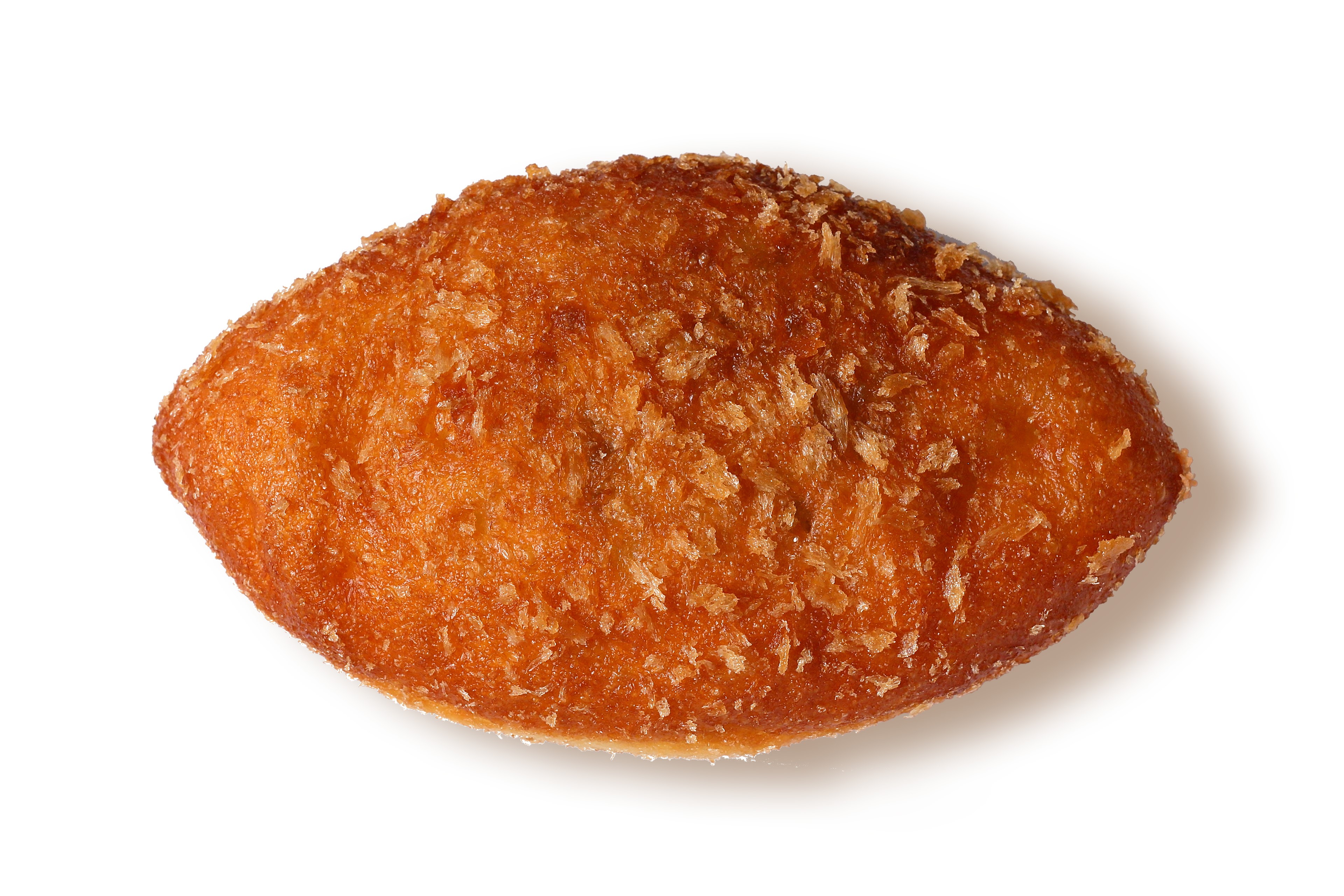 「むか新」人気商品の「こがしバターサブレ」の製法を活用し、国産バターがたっぷり入ったクッキー生地のメロンパン。焼き上げると表面に種子島産粗糖がキラキラと浮かび上がることから、クリスタルメロンパンと名付けました。