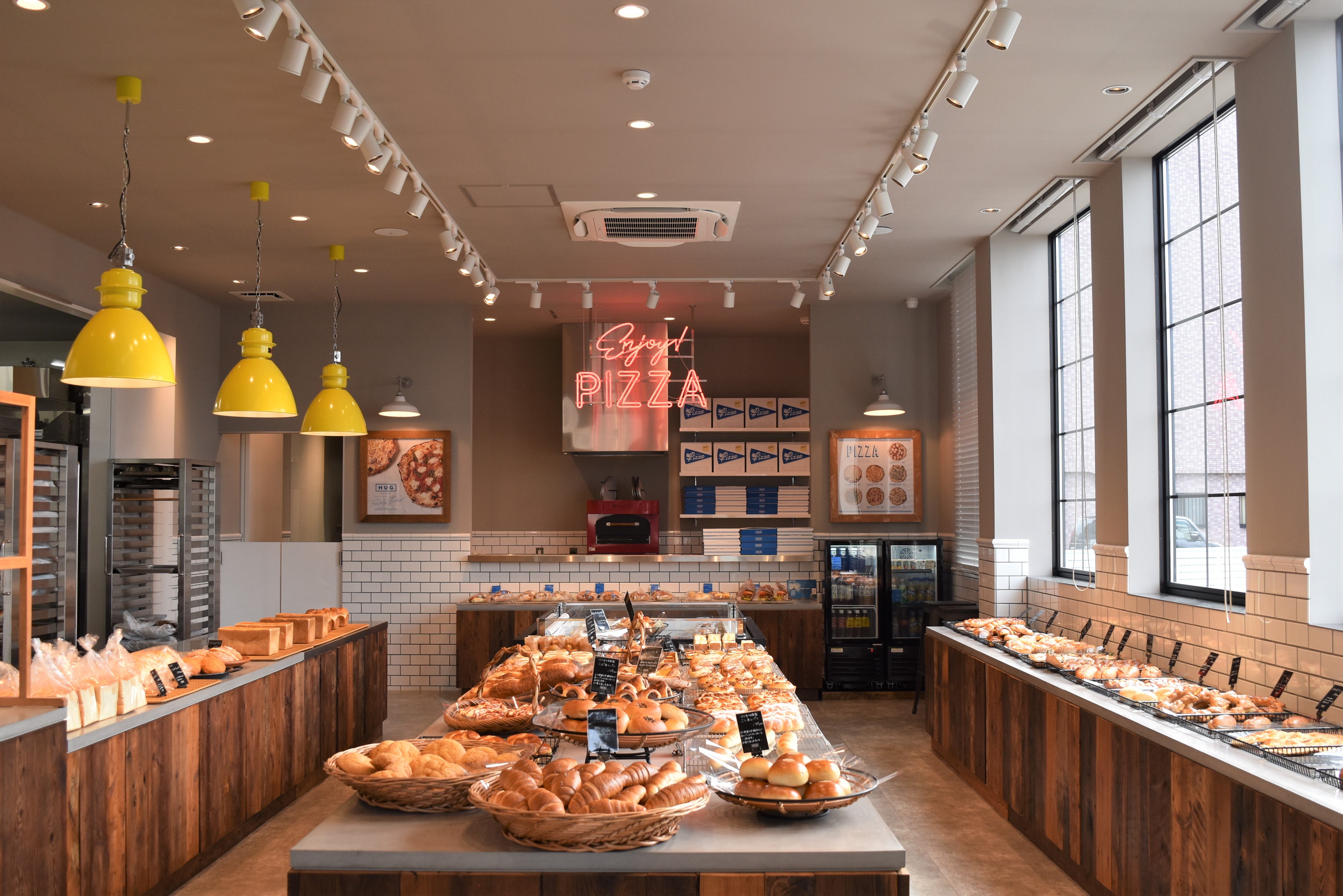 店内は、「むか新」で培った製法を活かした菓子パンをはじめ、塩パン、泉州たまねぎを使ったパン、生クリームをリッチに配合した食パン、サンドイッチ、ピザなど約100種類をラインナップ。