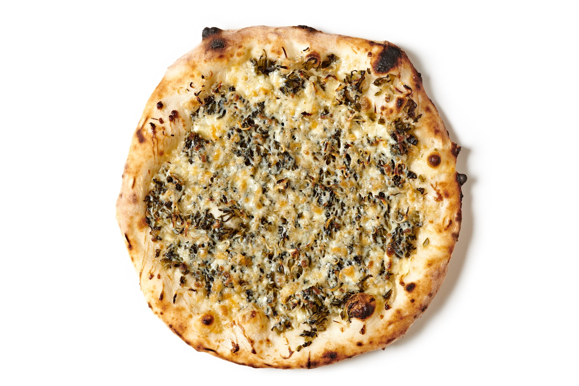 注文を受けてから店内の窯で焼き上げ、出来たてを提供します。和歌山・有田漁港直送のちりめんと野沢菜がのった和風テイストのピザ。