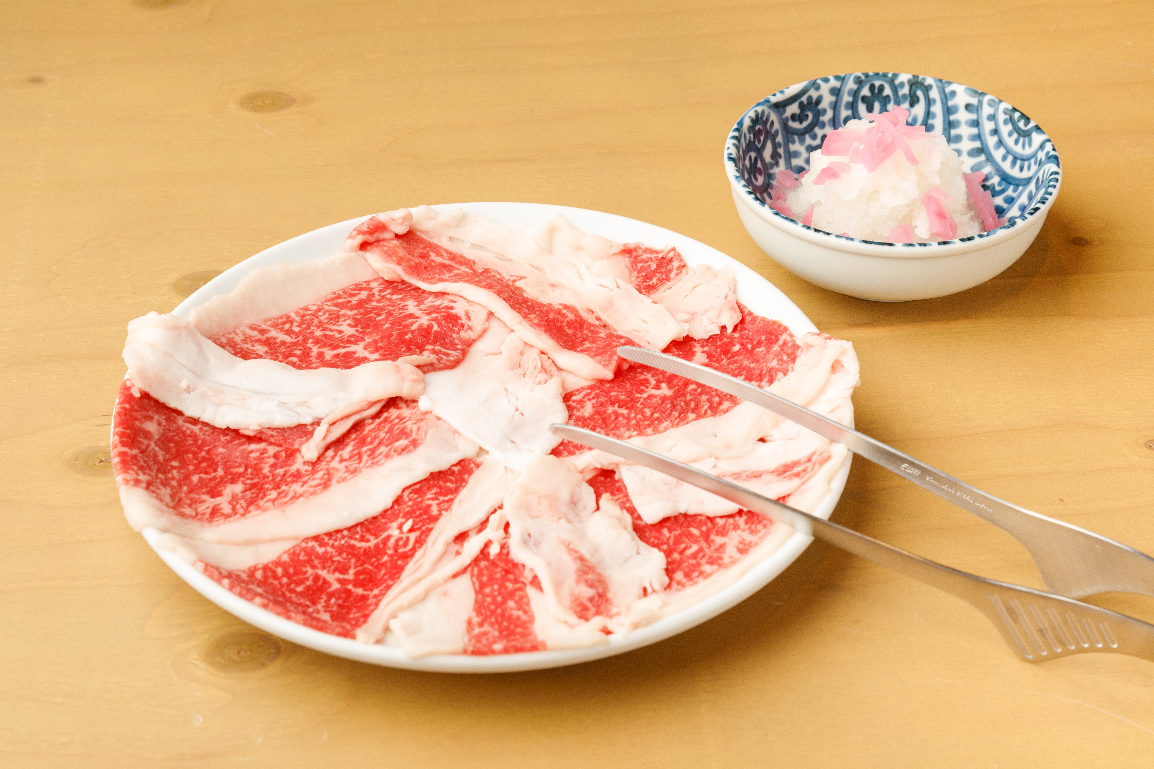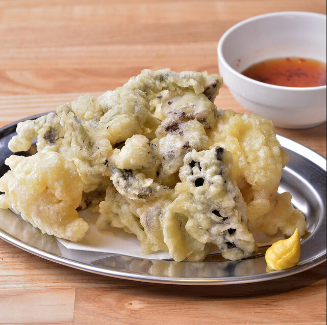 メニューは、ホルモン、焼肉、煮込み、天ぷらなど60種類以上をそろえます。広島県の隠れ名物で、歯ごたえのある赤身と適度な脂身のある「コウネ(前バラ)」(680円)のつけ添えとして、 4号店限定で地域のサッカーチームカラーにちなみ、スペイン語で桜の意味を持つ「セレッソ」色に漬けた大根と、鬼おろしを用意しました。