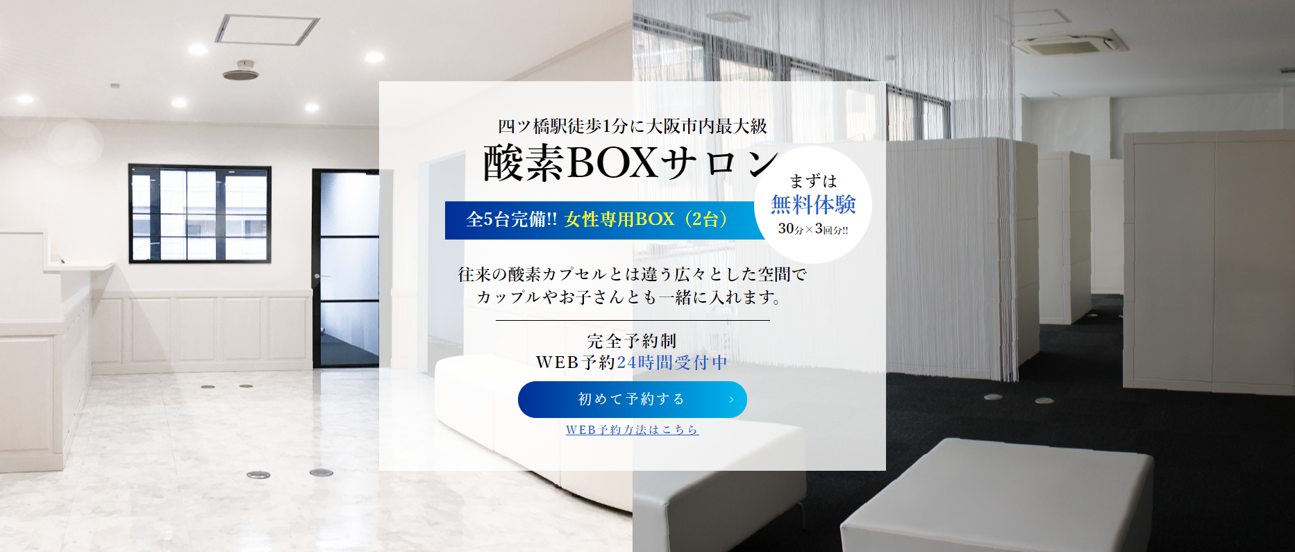 まずは、無料体験30分3回をご利用いただき、当サロンの雰囲気と酸素の力をご実感ください。