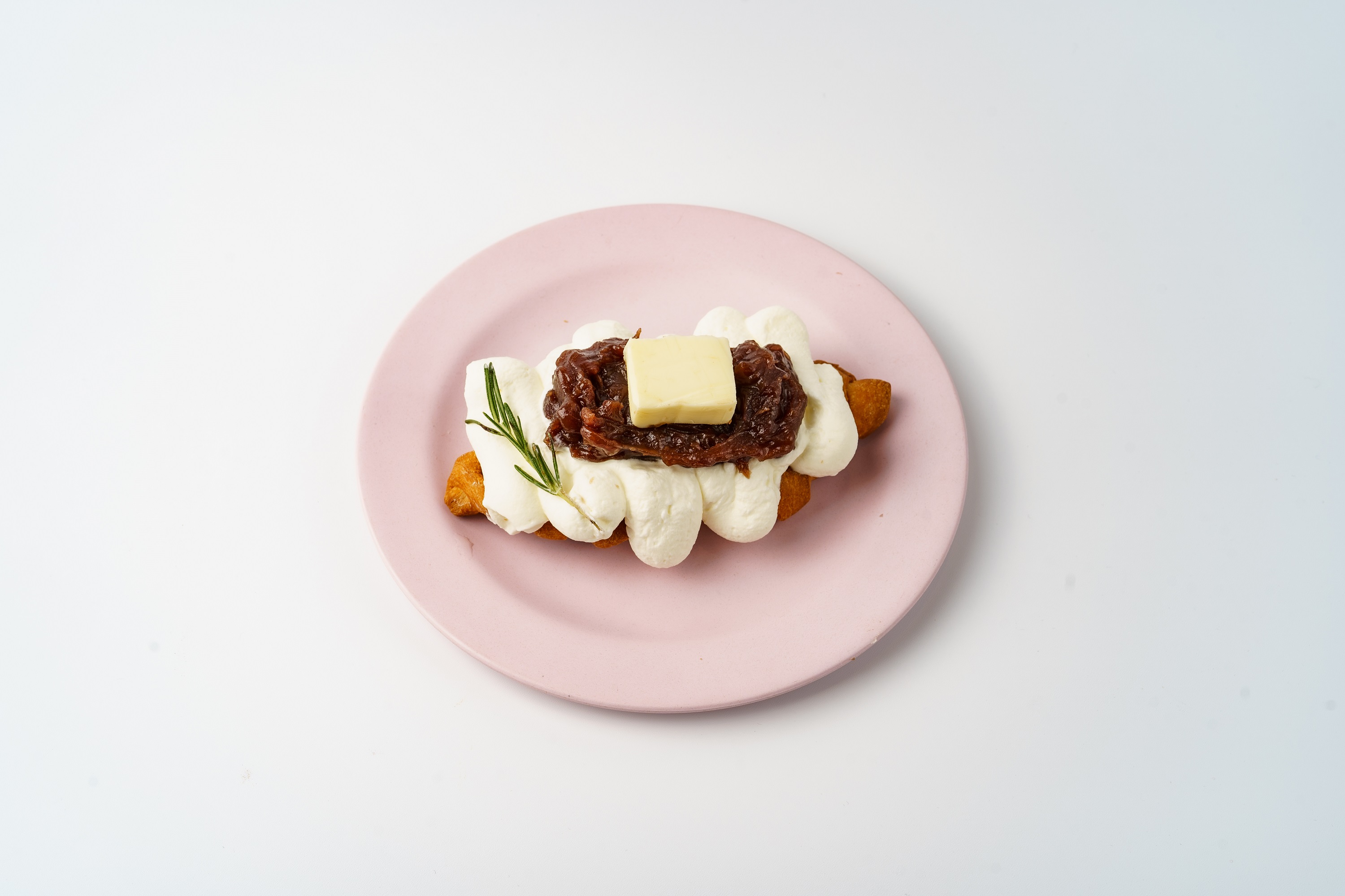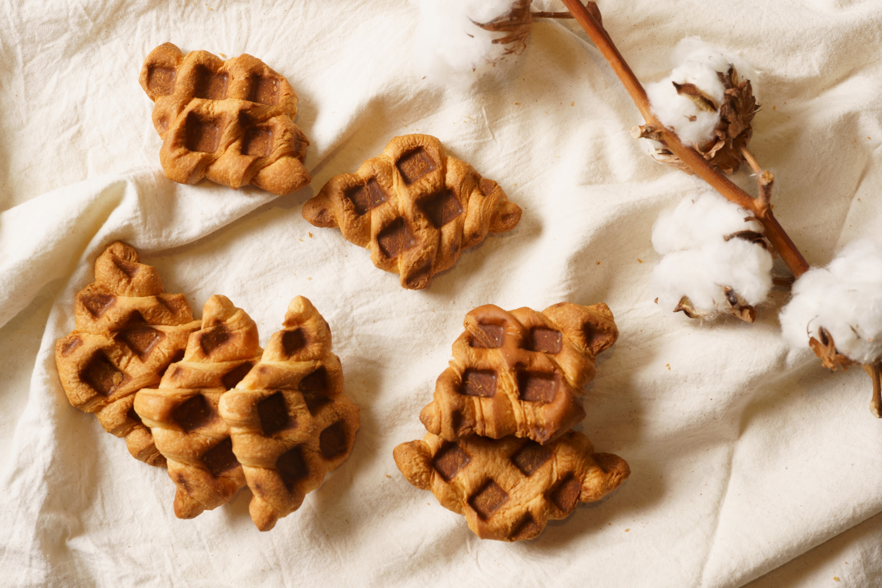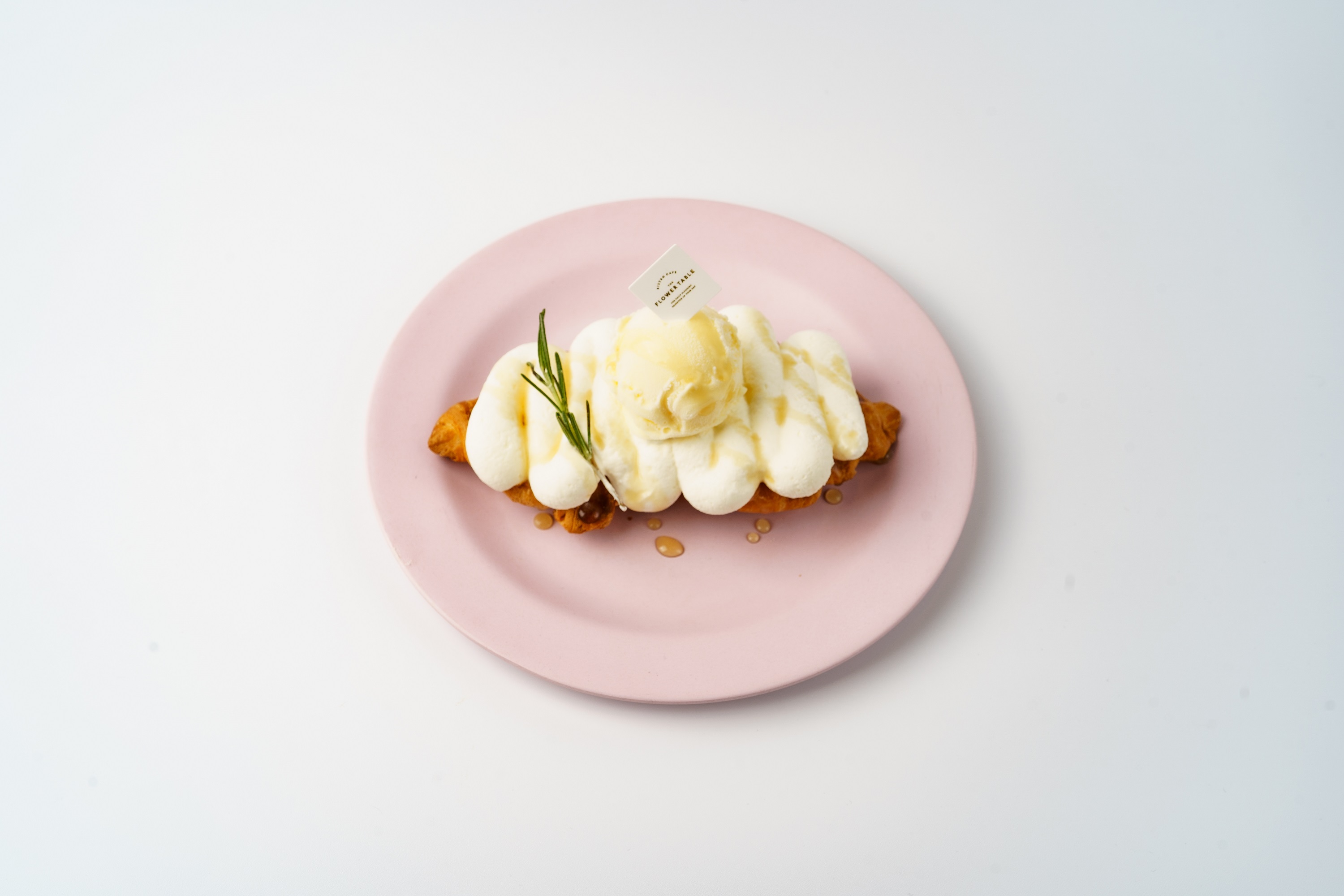 クロッフルとは、クロワッサン生地をワッフルメーカーでプレスした新感覚スイーツ。韓国から人気に火がつき、東京・新大久保でも話題のメニューとなっています。「THE FLOWER TABLE」のクロッフルは、バターたっぷりのクロワッサン生地を使用しており、オーダーが入ってから熱々のワッフルメーカーでプレスすることで、表面はパイのようにカリカリに、そして焼き立てのサクッと食感中はもっちり食感と、凝縮したバターの香りをお楽しみいただけます。