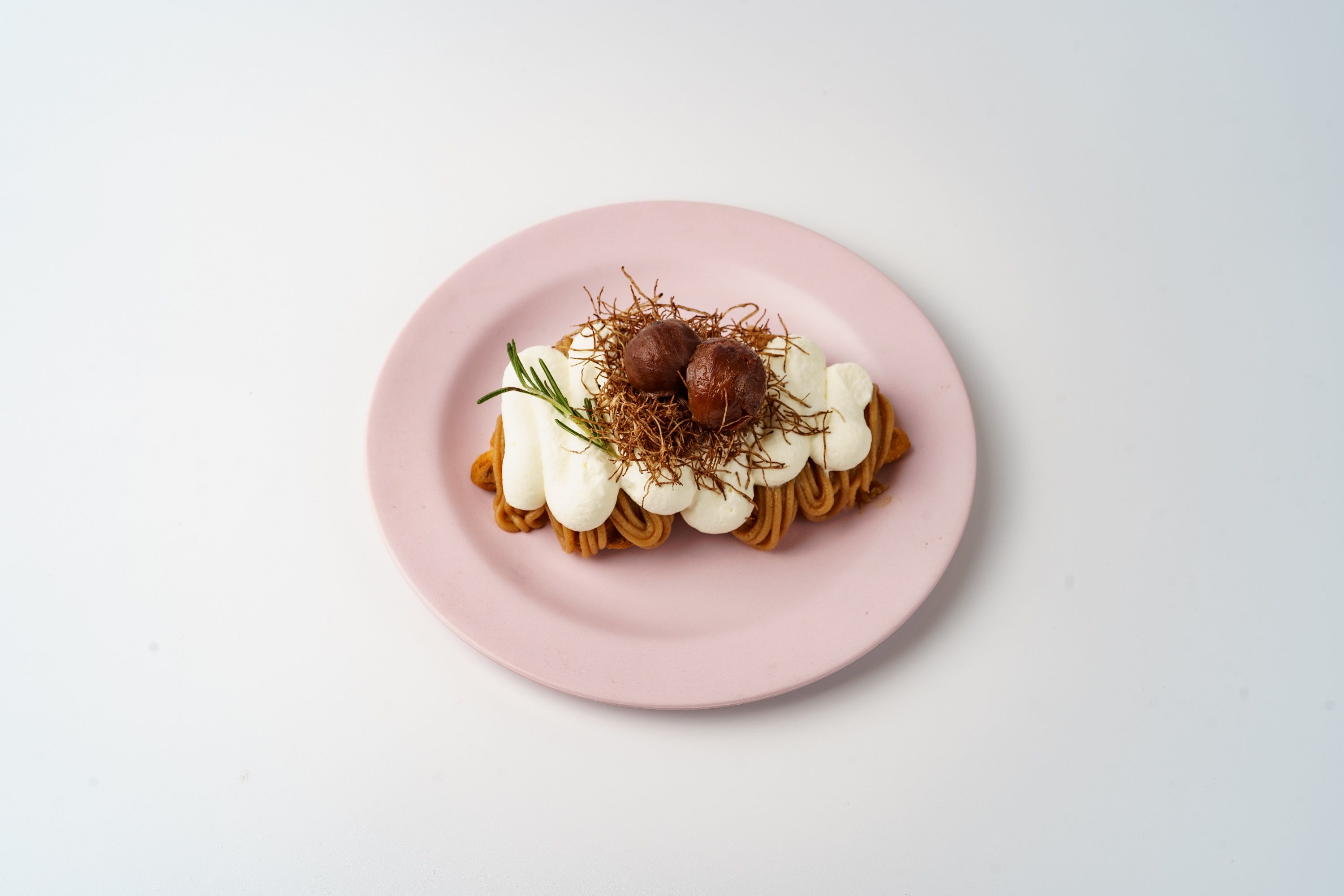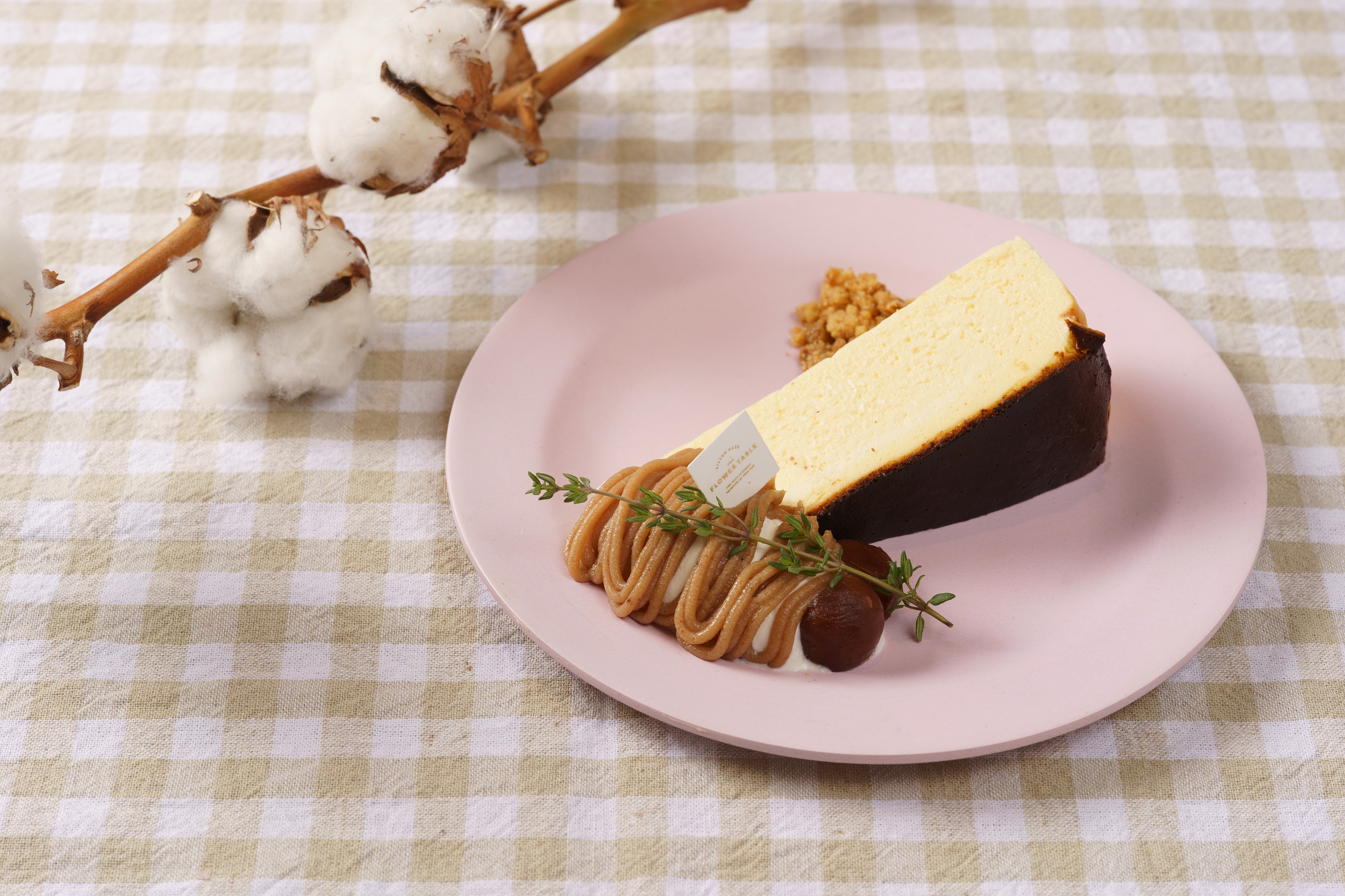 大人気のバスク風チーズケーキ に秋らしくモンブランクリームをトッピング!