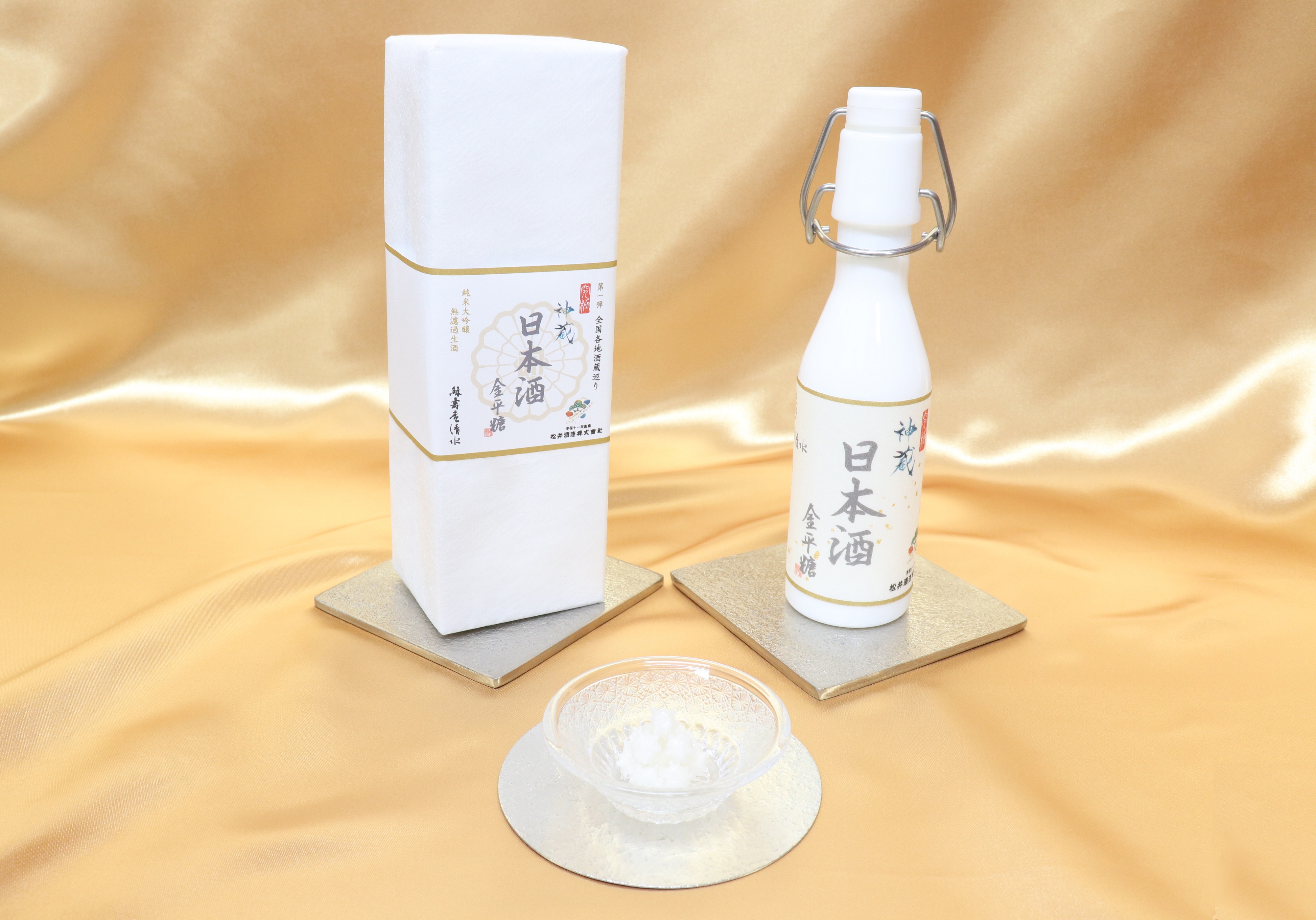 縁起が良い「寿」菓子の金平糖に「祝」米を使用した日本酒を用いることで、出来上がった『究極 神蔵 日本酒の金平糖』は縁起が良くおめでたいものとし、明るい未来への希望の思いを込めました。