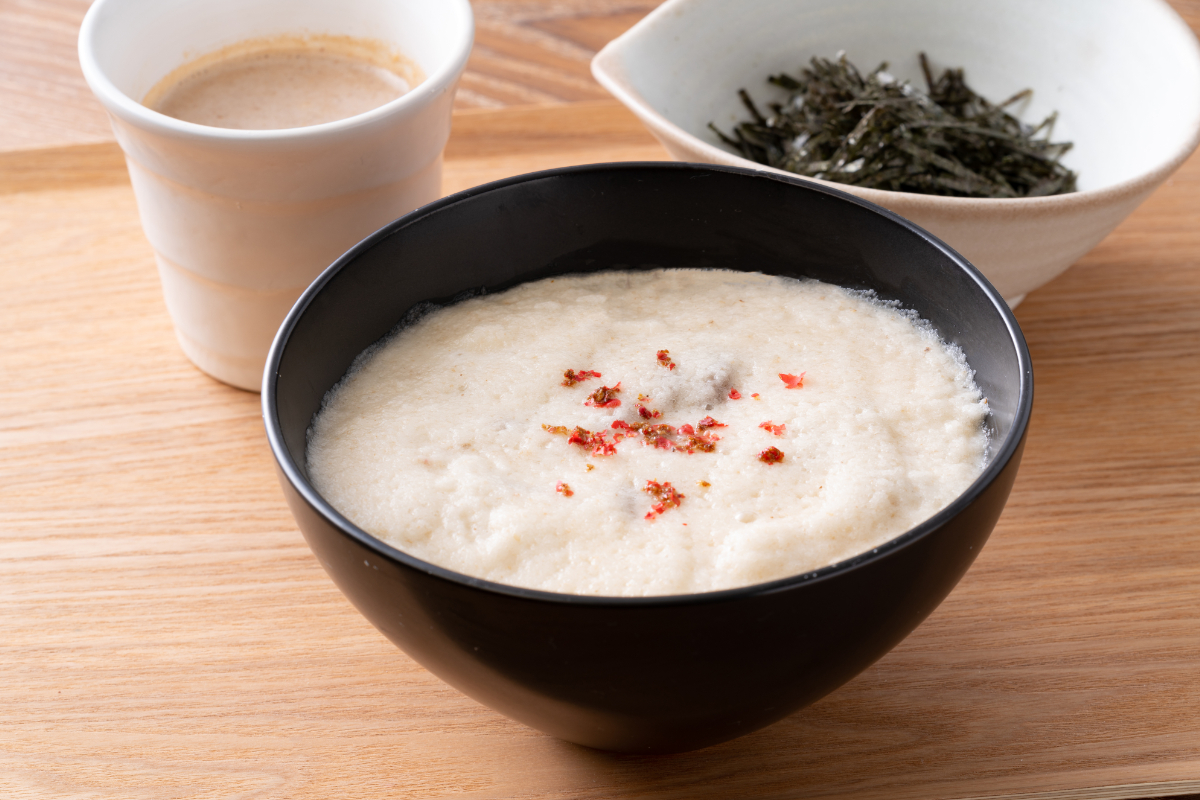 「炙り肉soba」は、特製ダレで香ばしく焼き上げた薄切り豚ロースかぶり肉(肩ロースとサーロインに挟まれた背肉の一部)がどっさり乗ったメニューで、並(850円)と上(1,100円、並に比べてお肉の量が2倍)を用意し、ビジネスパーソンでにぎわう本町エリアにうってつけです。お好みでラー油をつけて食べたり、まろやかな味を楽しみたい方は生卵を溶いて食べるのもおすすめです(1人1個まで無料)。国産山芋と黄金だしをブレンドしてふわふわに仕上げた「ふわとろsoba」(950円)は、”真っ白なそば”としてインパクト抜群。特製くるみダレにくぐらせて食べる、女性や健康を意識する方へおすすめできるメニューです。上記のほか、近江鴨のロースを使った「炙り鴨soba」(1,200円)、鰻をまるごと1本使い、錦糸玉子が鮮やかな「鰻soba」(2,200円 ※数量限定)などを用意。ガッツリ系から健康系まで幅広くそろえ、大阪・本町で活動する方たちに愛されるお店を目指します。