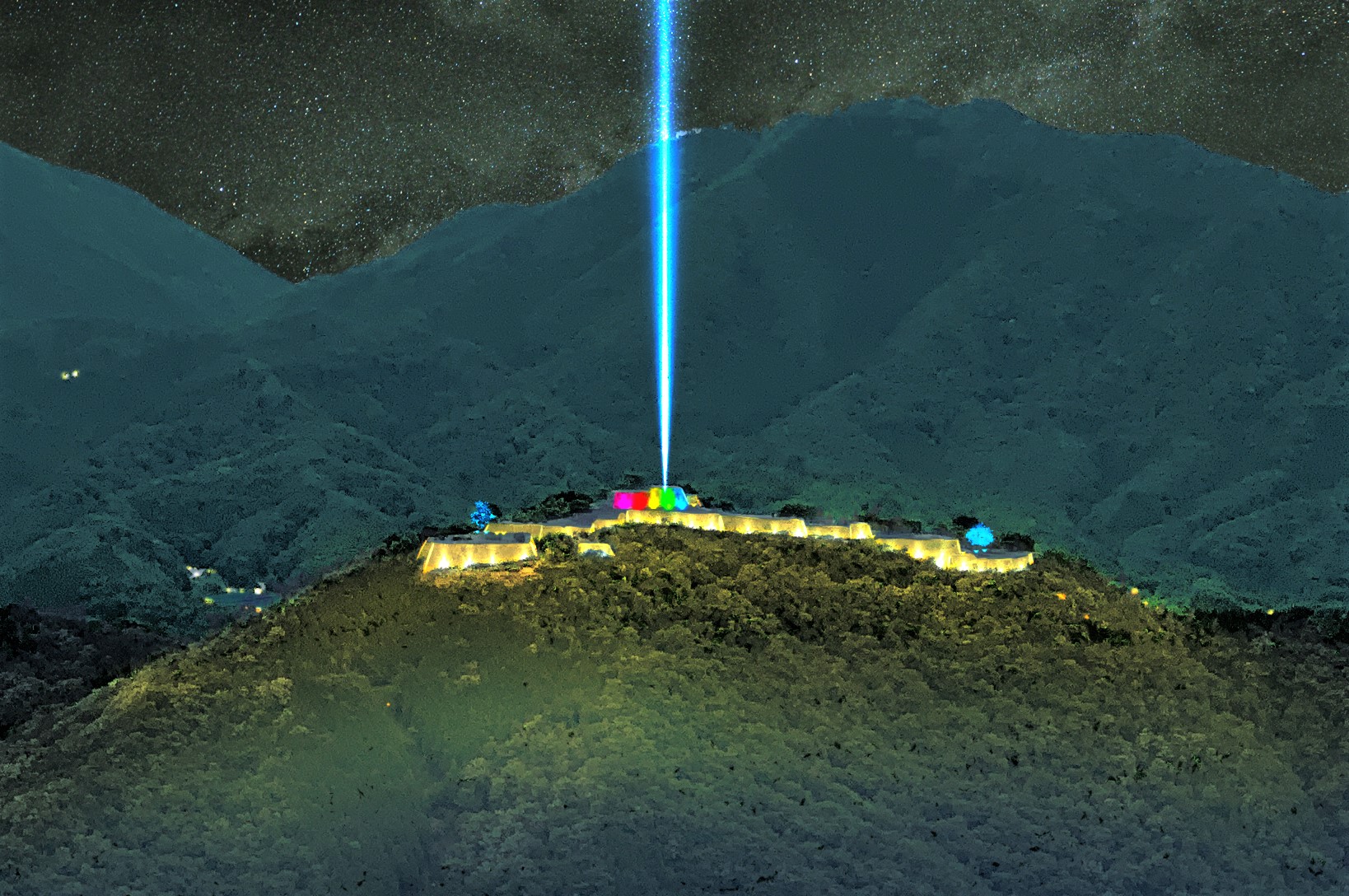 ■希望の光を竹田城から全国へ。青、緑、赤、虹色の光で様々な団体へエールを送ります