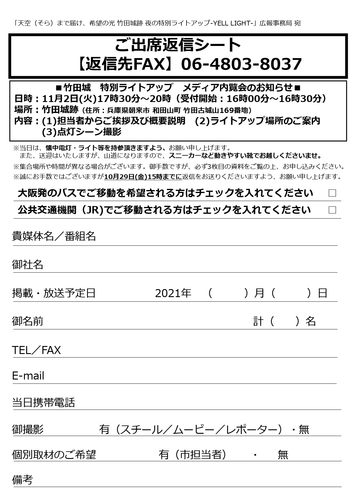 ※ご出席いただける方は、リリース2枚目の返信シートに必要事項を記入の上、10月29日(金)15時までにご送信くださいませ。