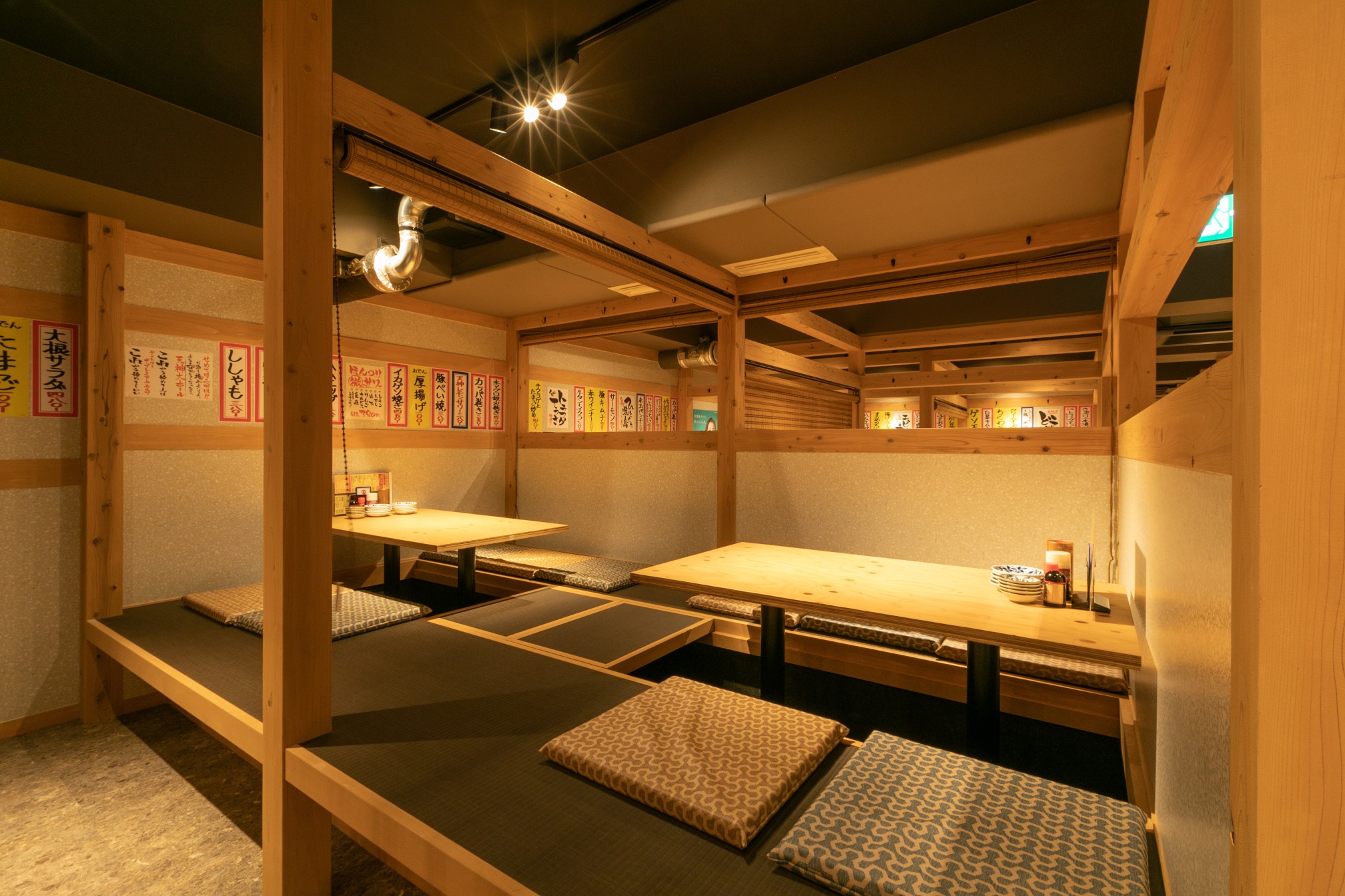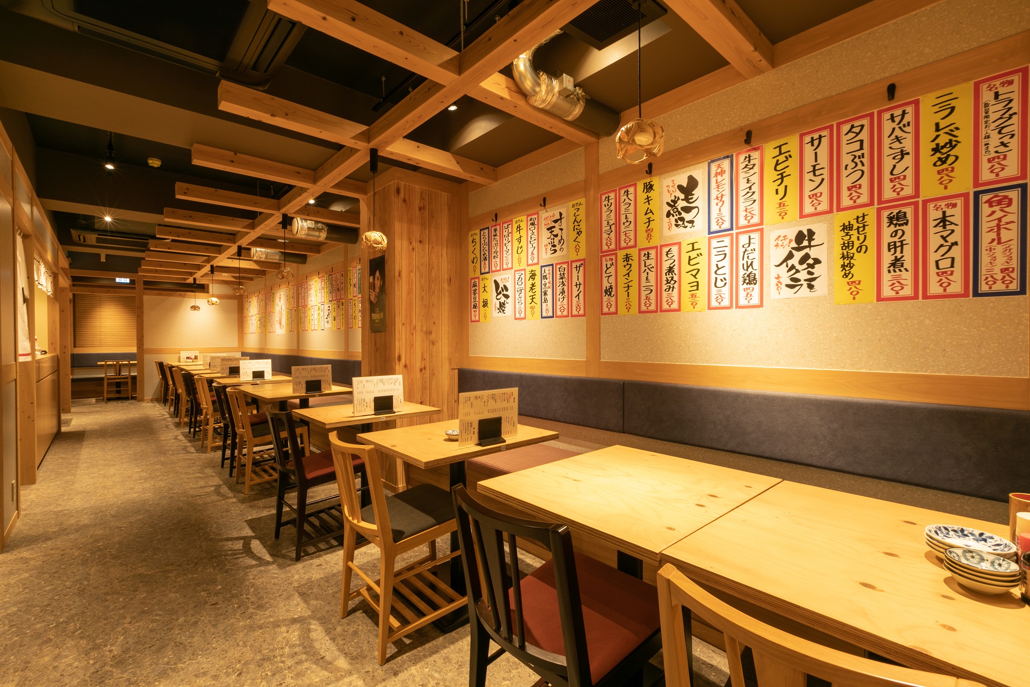 学生やファミリー層、近隣の方やおひとり様にも気軽に楽しんでほしいという想いから、臨場感溢れるL字のカウンター、2階には個室、お座敷もご用意しました。駅から徒歩1分と立地も良く、さまざまなシーンでお使いいただけます。