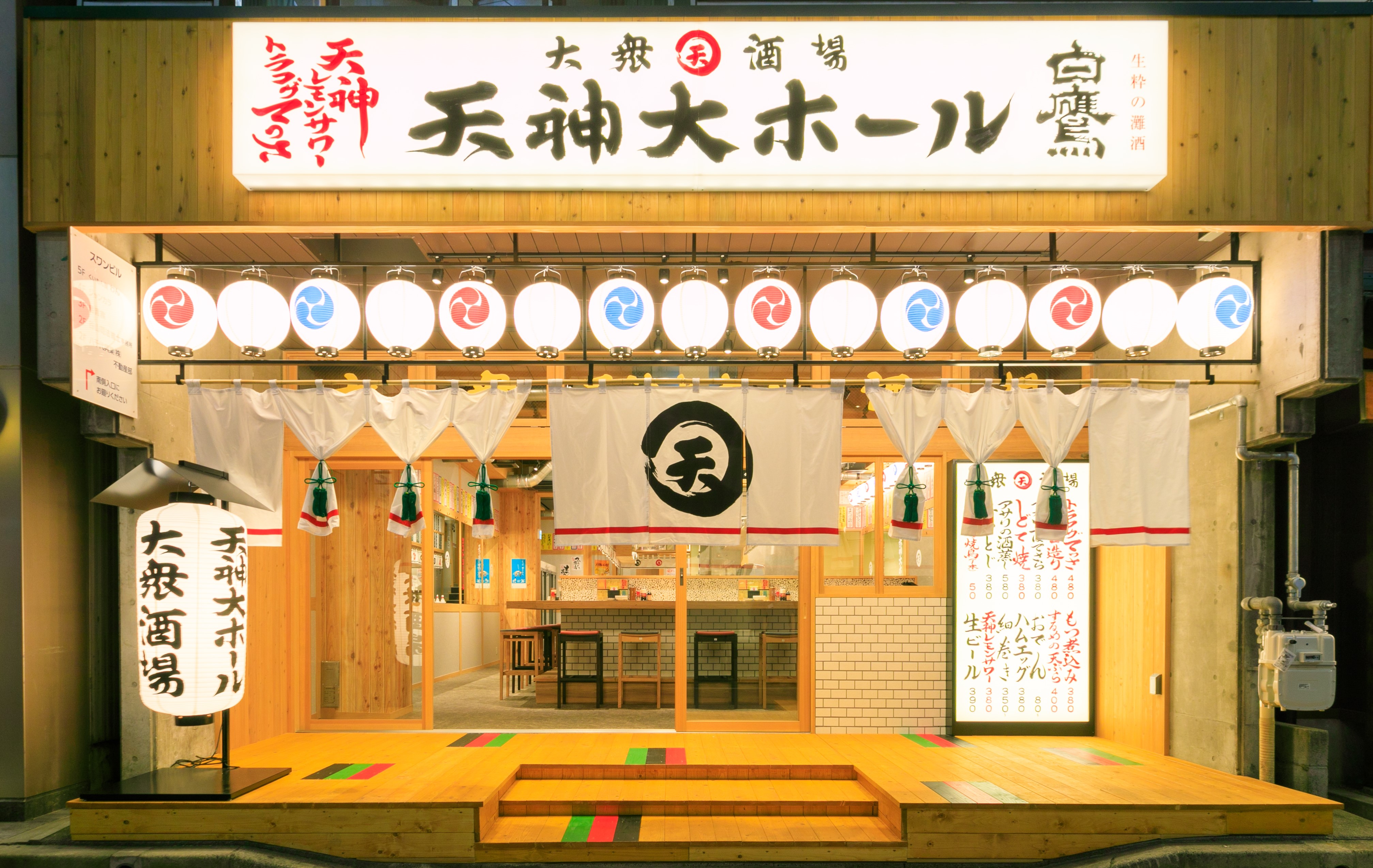 「天神大ホール」は2019年8月、 「古き良き昭和の大衆酒場」をコンセプトに梅田・お初天神にオープンしました。西宮北口店もコンセプトは引継ぎ、店内壁に短冊メニューを貼るなどして昭和を思わせる大衆酒場の店構えでありながら、現代風でスタイリッシュな雰囲気を持ち合わせた「大衆酒場」をイメージしています。