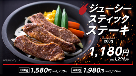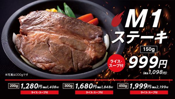 ■「燃えるステーキ」をコンセプトにOPEN。厚切ステーキが税抜999円(税込1098円)~
