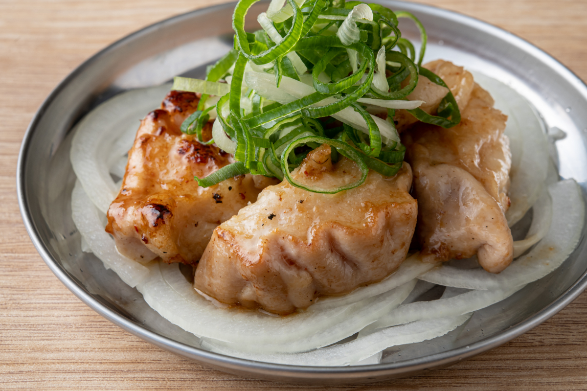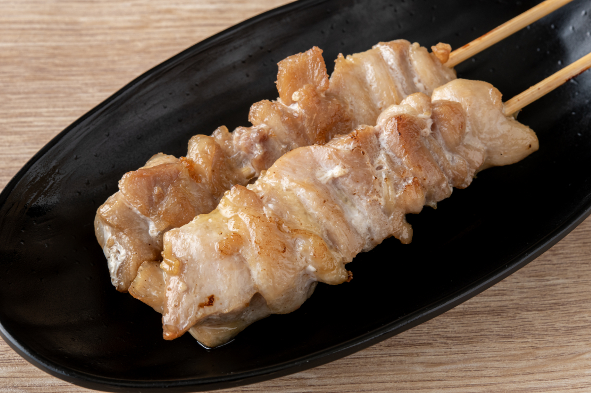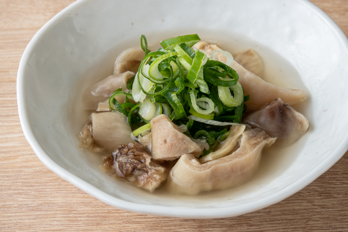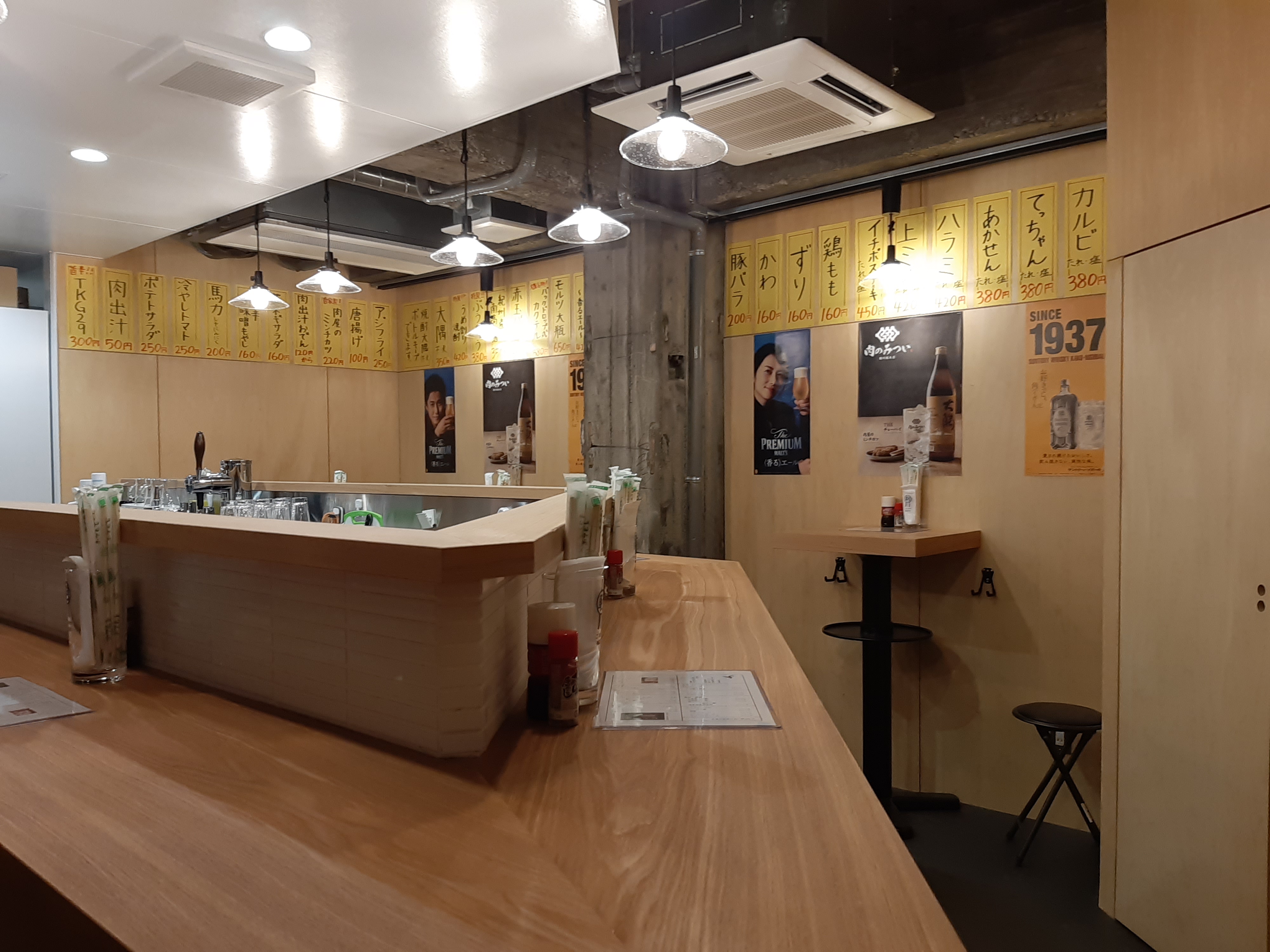 店内にはコの字カウンターを備え、カウンターから見える形で焼き台を設置しています。フライヤーは通行客から見える位置に置き、目の前で「焼く」「揚げる」ことでシズル感を演出。立ち飲みの目玉メニューは「焼肉皿」(380円~)で、ネギタン塩やカルビ、ハラミ、上ミノなど7種類で展開します。そのほか、焼鳥(2本、160円~)、肉の旨味が凝縮された「肉出汁おでん」(120円~)など約30種類ご用意。シメには「肉出汁」(50円)や挽肉の入った卵かけご飯「TKG29」(300円)がおすすめです。いずれも当社の食材調達力や調理経験を生かし、気軽に注文できる価格帯を実現しました。ドリンクは麦焼酎をベースに使用した、オリジナルの4種のチューハイ(290円~)を筆頭に、梅割り(420円)、特製ぶうちゅう(380円、焼酎のワイン割り)など約30種類をご用意しています。商店街を盛り上げる一翼を担えればという想いから、「駒川商店街」のロゴもお店の制作物に一部使用しています。