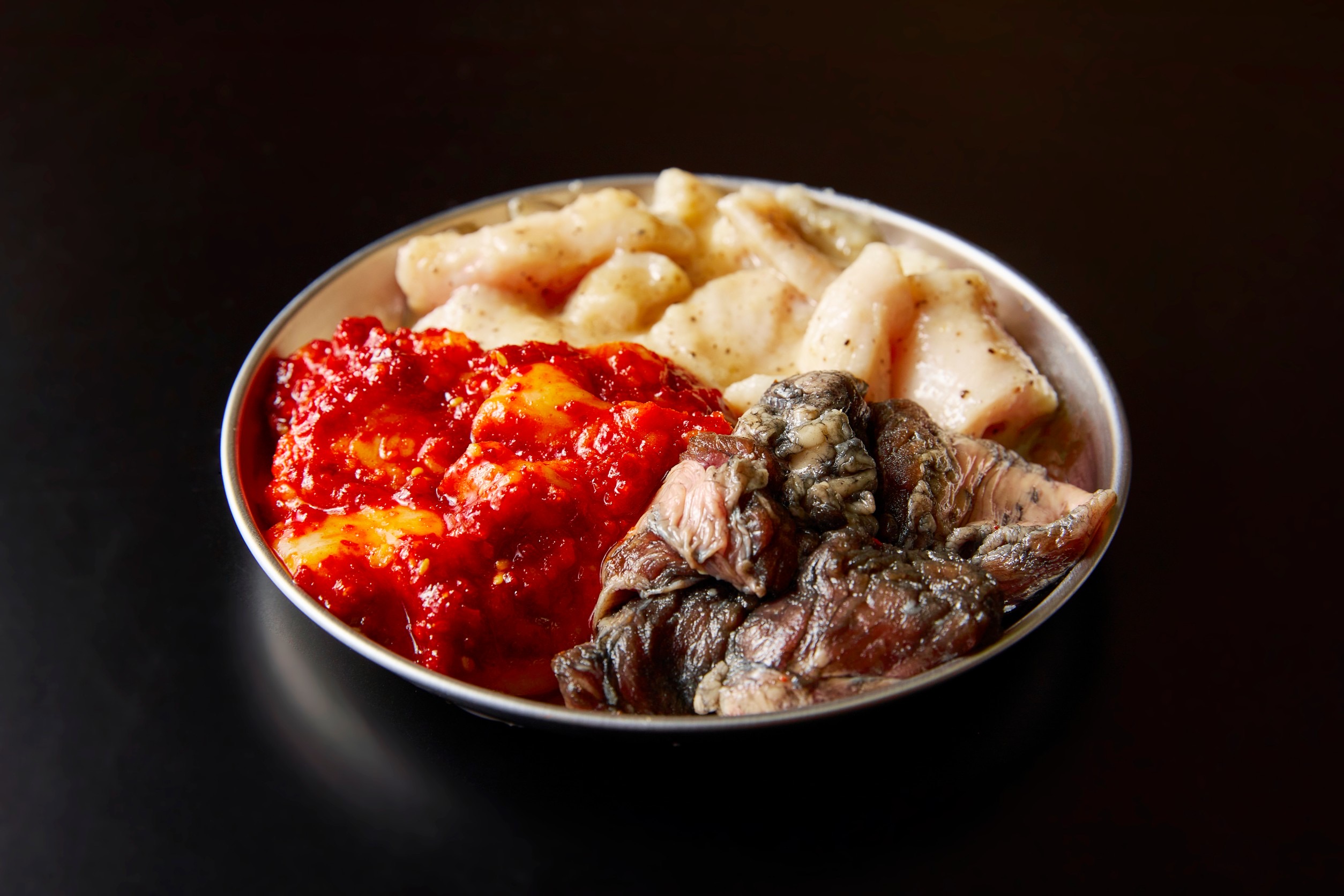 ホルモン以外に、近江牛の薄切りロースを6秒ほど軽く炙って卵黄を絡める「六秒ロース」(1,089円)、「近江牛焼肉」(1,419円)、「熟成大蒜(ニンニク)タン塩焼き」(979円)など9種類の焼肉メニューをはじめ、「白せんまい刺し」(649円)、「すっぴん冷麺」(539円)、「濃厚テールスープ」(759円)、などのフードメニューも約30種類そろえます。