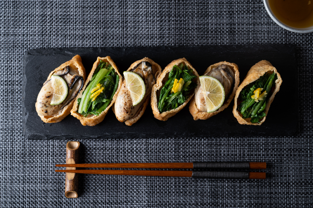 しゃりに使う酢は香川県産の柚子酢をベースにしたオリジナル酢を使っています。しっかりした肉厚なあげと、かつおをベースにブレンドしたお出汁の相性もお楽しみいただけます。いなりのほか、高知で出会った「田舎寿司」やちらし寿司、おうち時間の需要を考えていなりを使った「お重」にも力を入れています。