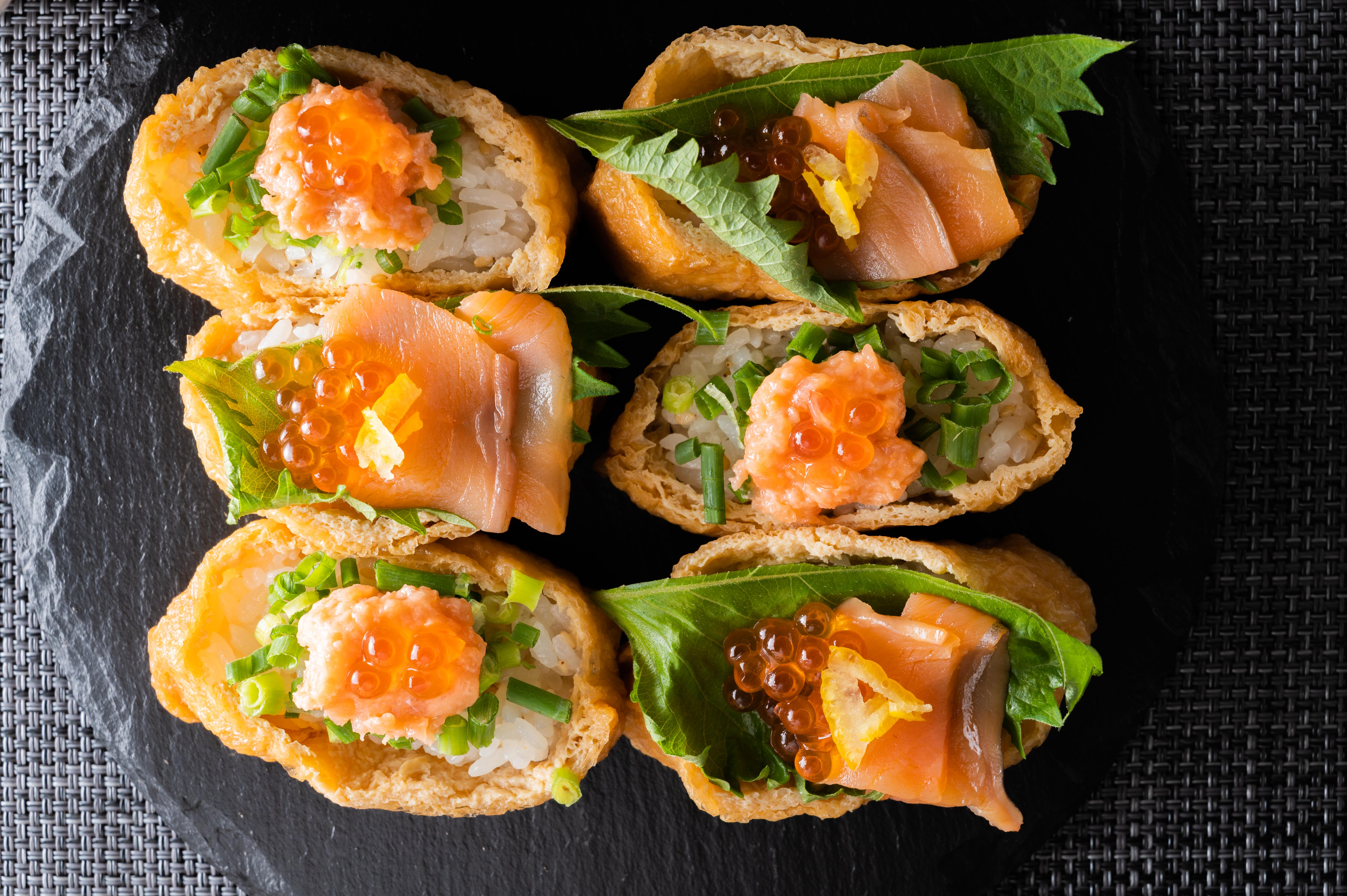 大丸福岡天神店限定メニューとして、九州の名物・明太子と、とろろを使った「明太とろろいなり」(270円)をご用意します。明太子の刺激と、まろやかなとろろのマリアージュを体感してください。