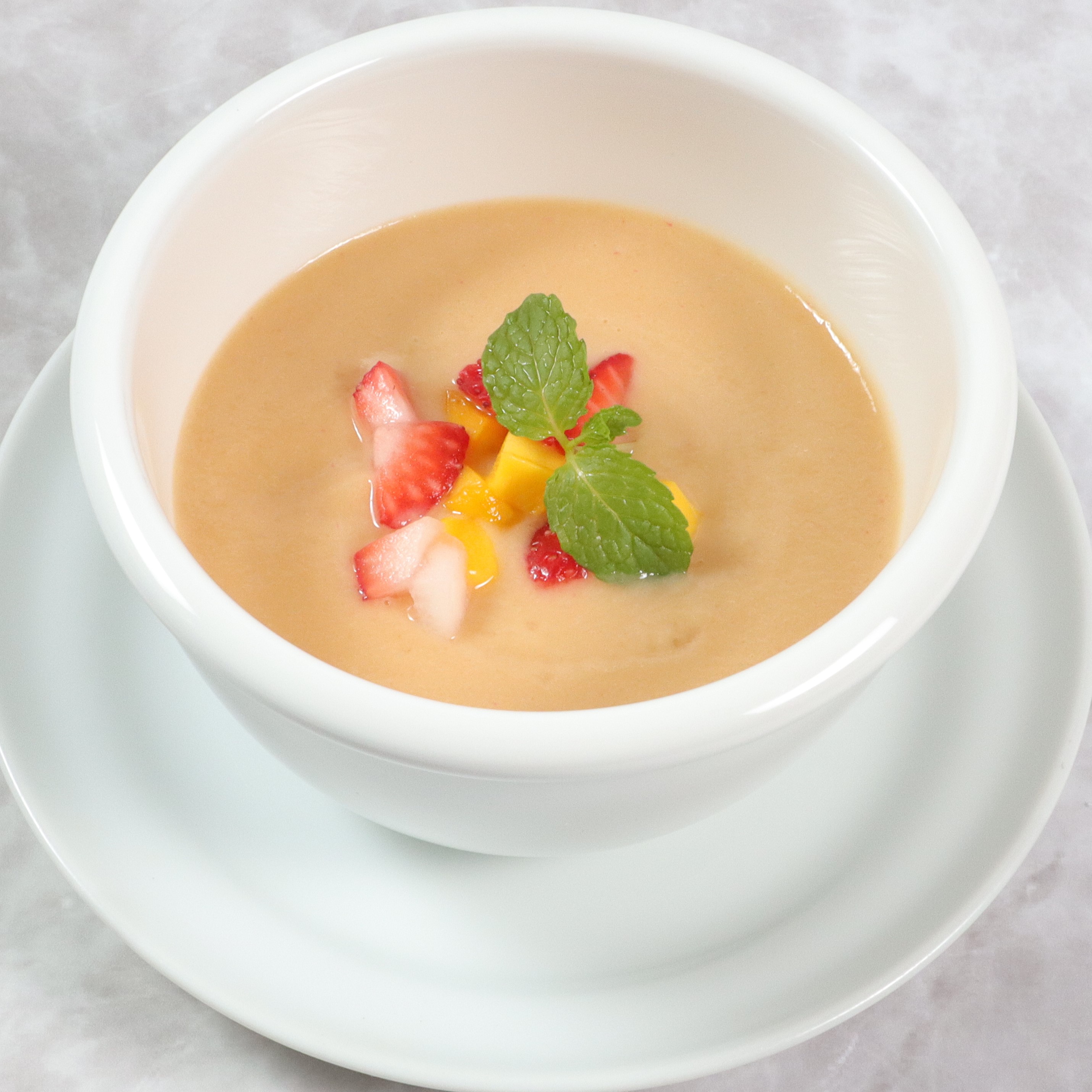 1つ目は「ミックスジュースソース」。ミックスジュースといえば、元祖喫茶店の味。オレンジ、りんご、バナナなどの果物と牛乳をバランス良くミックスし、追いソースに仕上げました。甘酸っぱくトロっとしたソースが染み込み、大阪生まれの味をハニトーとともに味わえる追いソースです。