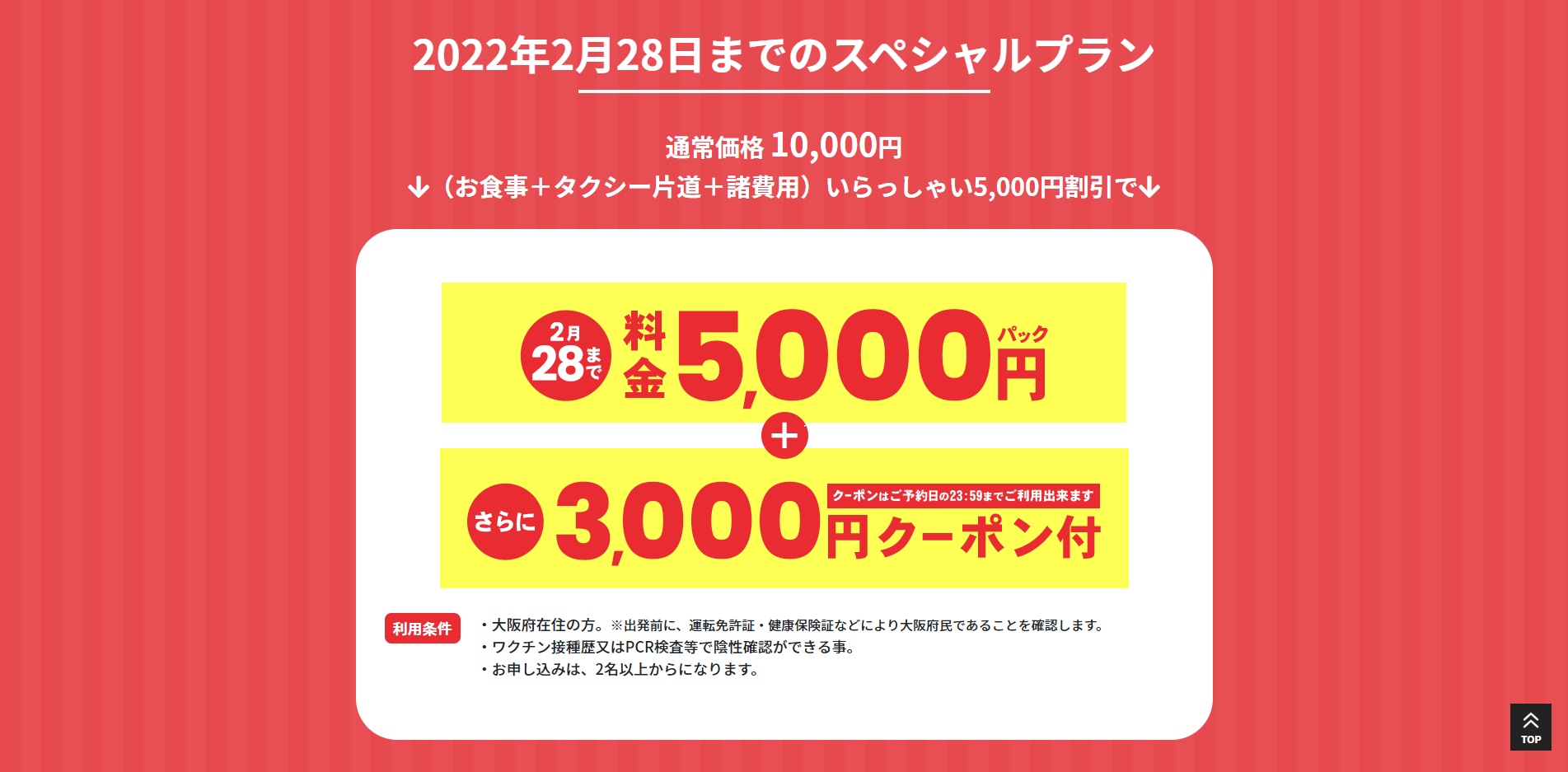 〜 大阪府民限定 豪華な料理とタクシーが付いた安心パック 〜