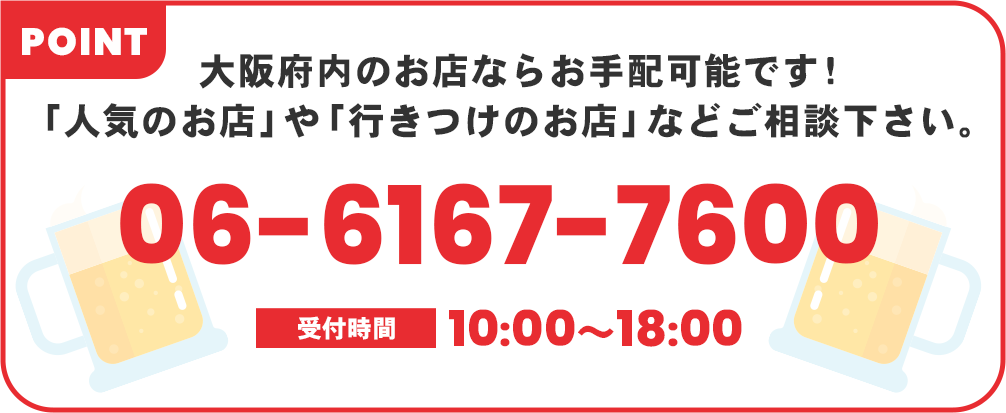 ※大阪府内のお店ならお手配可能です!「人気のお店」や「行きつけのお店」などご相談下さい。