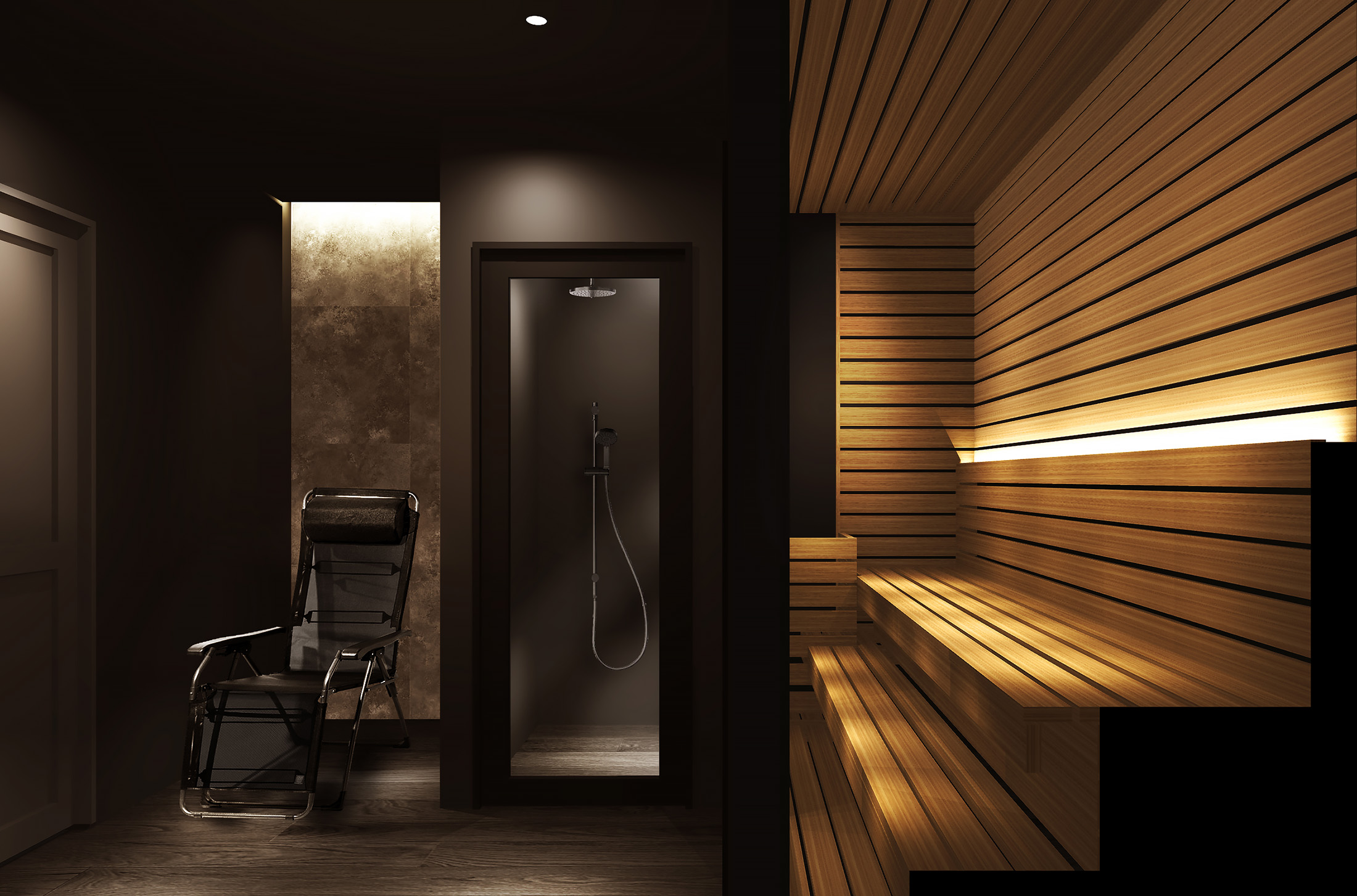 シャワールームの冷水は常に15℃に設定。400口径の大型オーバーヘッドシャワーを完備しておりますので、頭から体全体をクールダウンさせることが可能です。サウナは都度利用(80分制)で5,000円前後を想定しています。リラクゼーションメニューもご用意しておりますので、サウナ後は同じく個室のエステ室に移ってヘッドスパなどを受けていただき、至福の時間をお過ごしください。