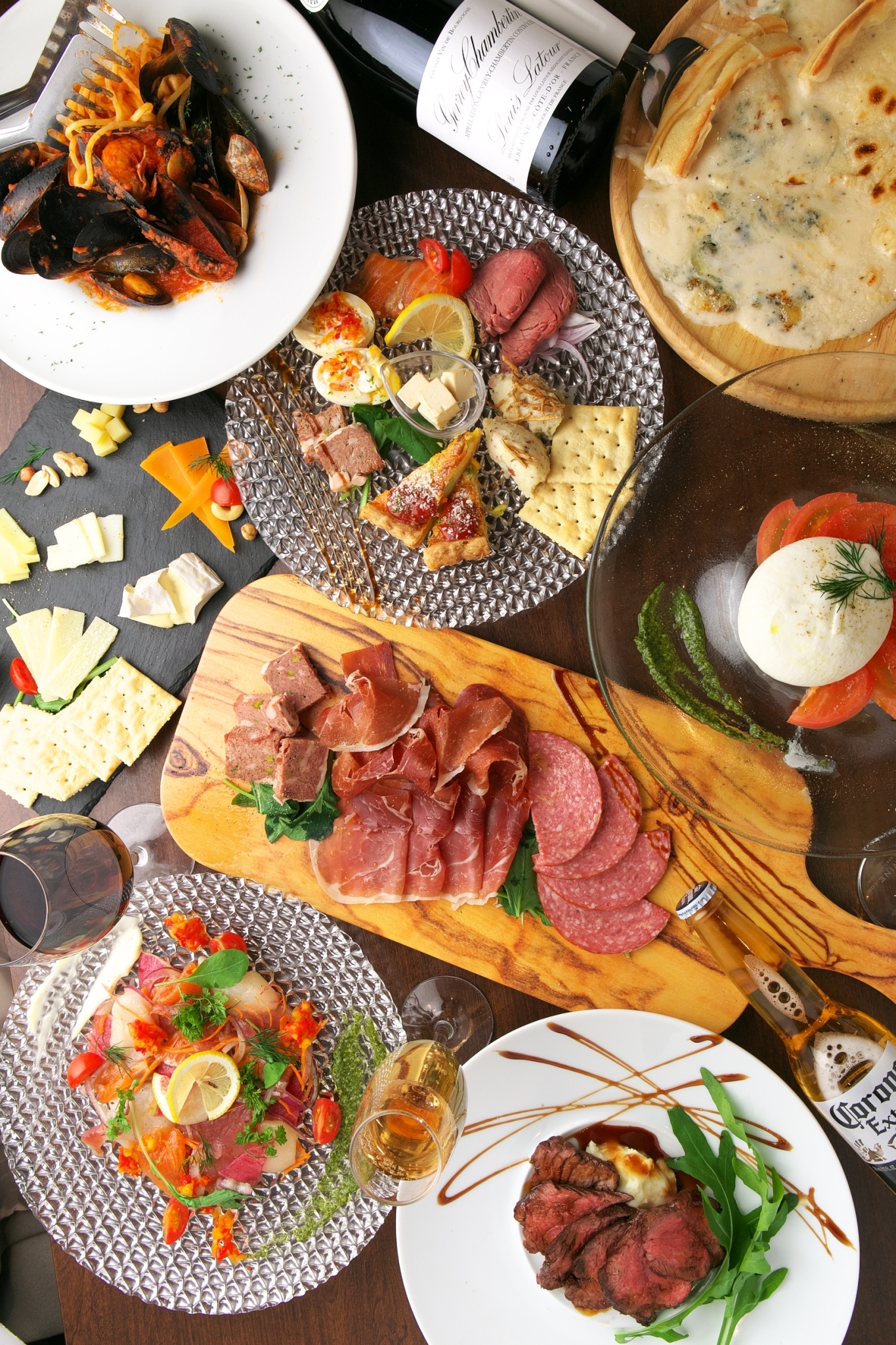 看板メニューのシカゴピザ、チーズフォンデュなどの創作チーズ料理から肉料理、デザートまで、約55種類ご用意しております。