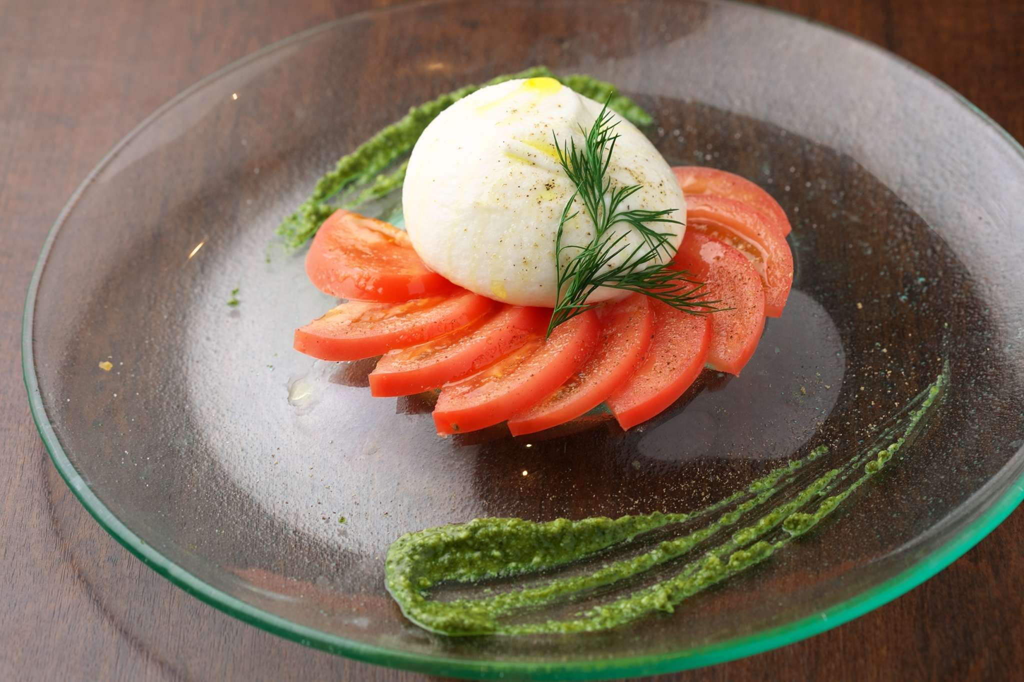 ・丸ごとブッラータチーズのカプレーゼ(1,386円)