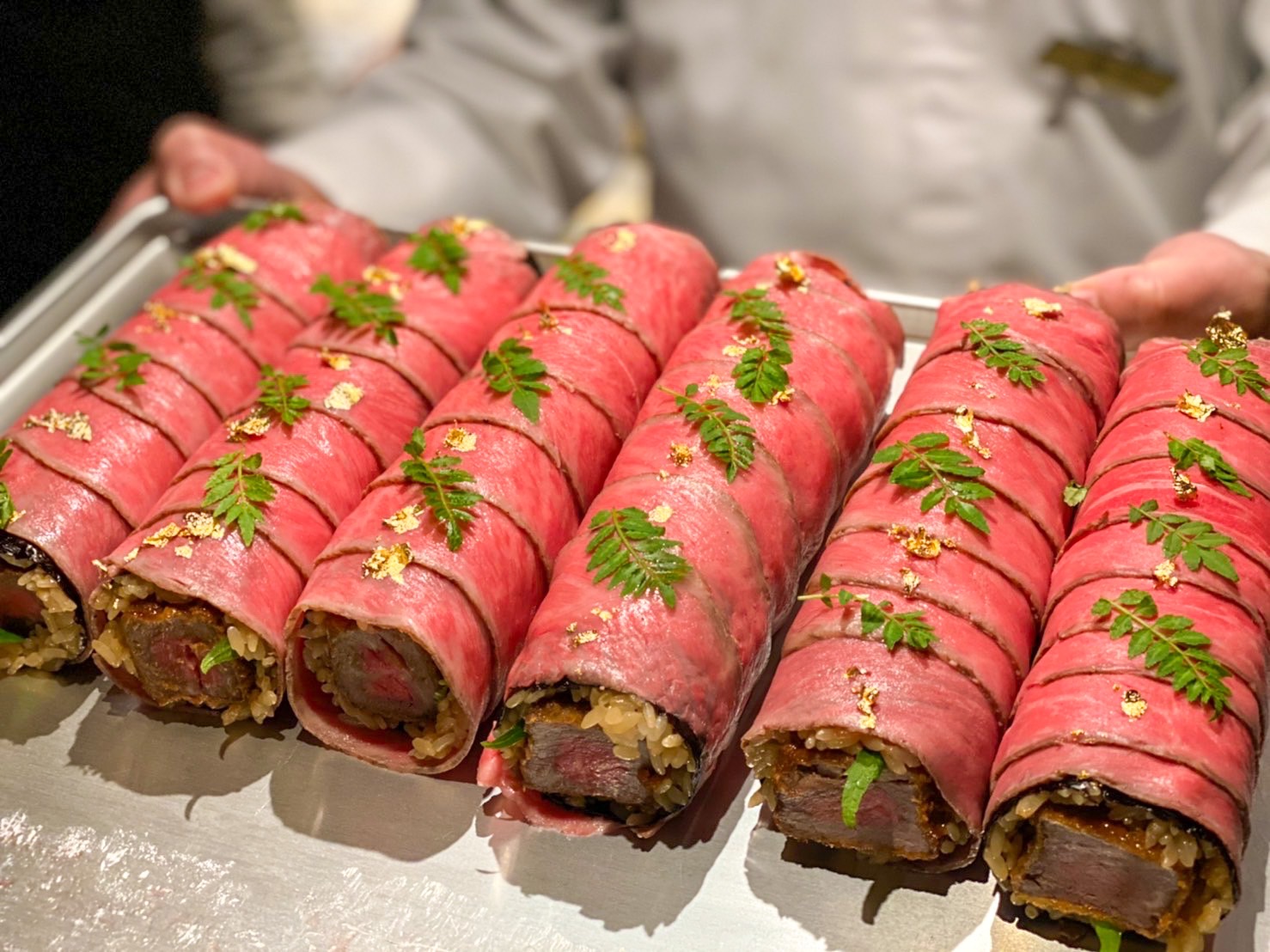 大阪の肉懐石料理店「salon du kuma3(サロンドクマサン)」(北新地・島之内、全2店)は、2月3日(木)「節分の日」限定で黒毛和牛をふんだんに使った「黒毛和牛の恵方巻」(1万1,000円)を予約販売いたします。ご予約は、1月20日(木)より受付を開始いたします。