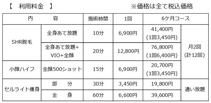 料金は1室10分からの時間制で、同時に2名までご利用いただけます。店舗は梅田駅から徒歩5分にあり、買い物途中や会社帰りなどのすき間時間に、プロ用の最新機器を使って時短で脱毛から、小顔ハイフ・セルライト痩身までトータルで施術することができます。スタッフによるカウンセリングの有無を選べるほか、利用ごとに部屋の掃除・消毒を行い、スリッパやタオルは使い捨てを使用し感染対策を万全に実施いたします。