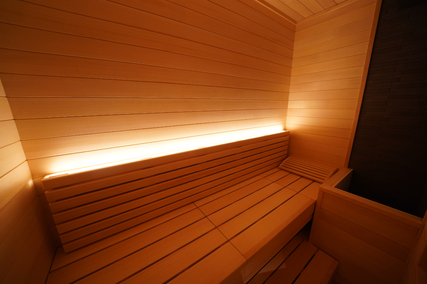 サウナ室、シャワー室、外気浴のスペースを設けた個室はすべてオーダーメイドで設計。サウナ室は横になれるよう幅2.2メートルを確保し、室温も80~100℃で調整できます。既存のサウナではロウリュのタイミングも気を使いますが、MENTEではご自身の好きなタイミングでお楽しみいただけます。