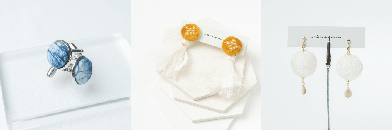 sampaiは、京都・西陣で伝統産業や服飾産業の生産過程で出るアップサイクル素材を再利用したハンドメイドアクセサリーブランドです。地域の企業に足を運び、アクセサリーの元となる素材ができるまでの話を聞き、職人の想いを知った上でそれぞれの素材を活かしてハンドメイドアクセサリーを作ります。単なるアップサイクルアクセサリーとしての地位確立を目的とせず、産業の製作・販売工程における作り手の「想い」の可視化をミッションに掲げています。アクセサリーという身近な商品の購入を通して、伝統産業・地域企業に関わる機会を創出。購入段階での作り手、事業者の想いや苦労の可視化により、商品の購入や「消費行動」について考え直すきっかけを創ります。