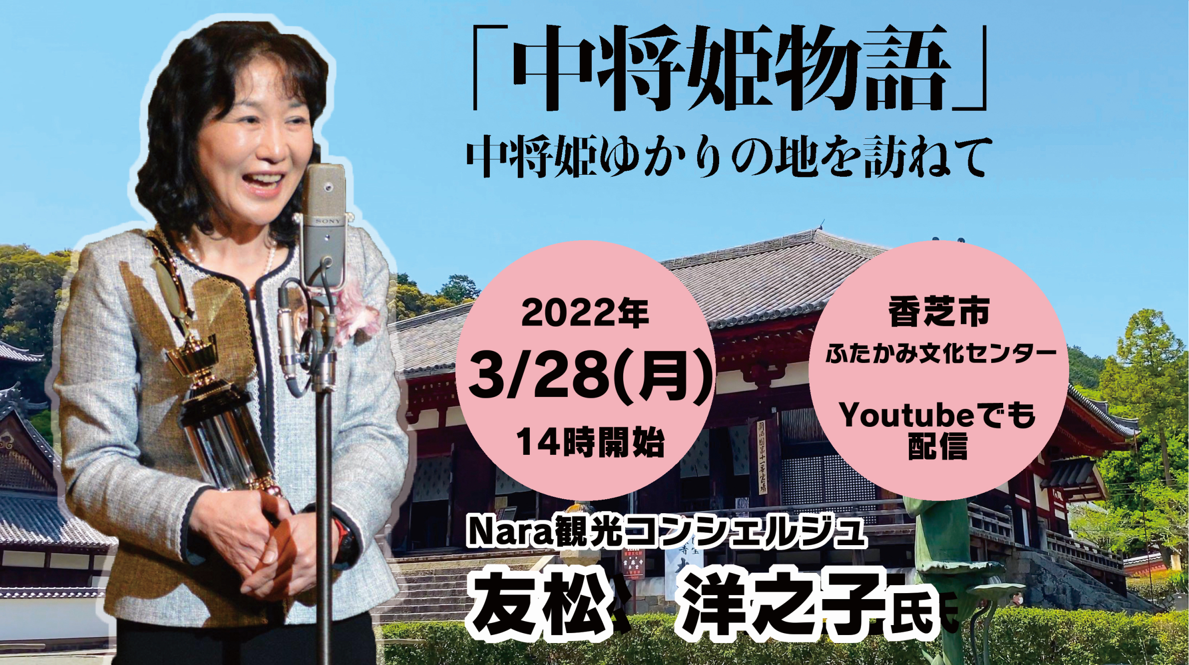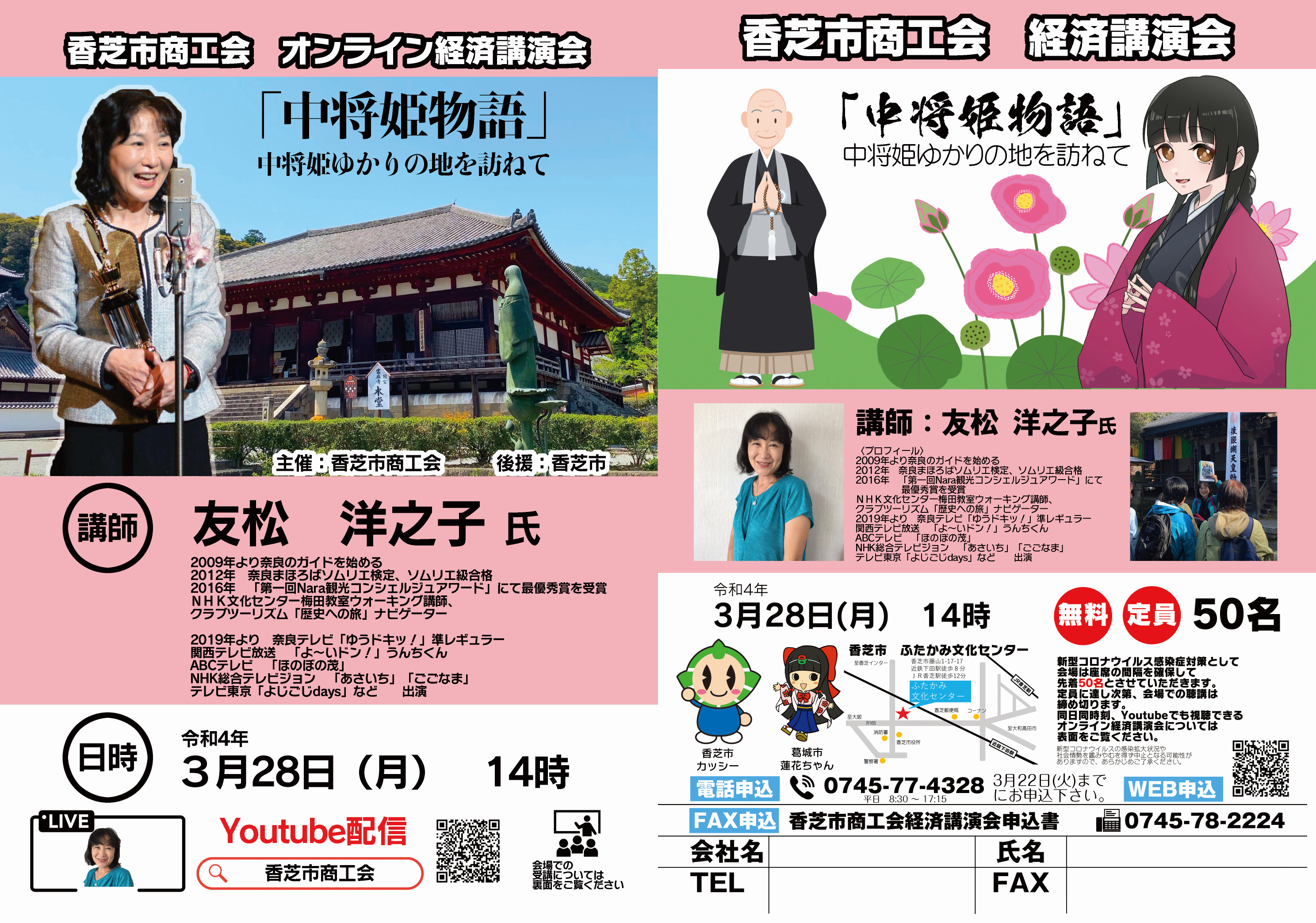 香芝市商工会(所在地:奈良県香芝市)は、Nara観光コンシェルジュ 友松 洋之子氏を講師に迎え、経済講演会を2022年3月28日(月)に開催し、オンラインでも同時配信することをご報告いたします。