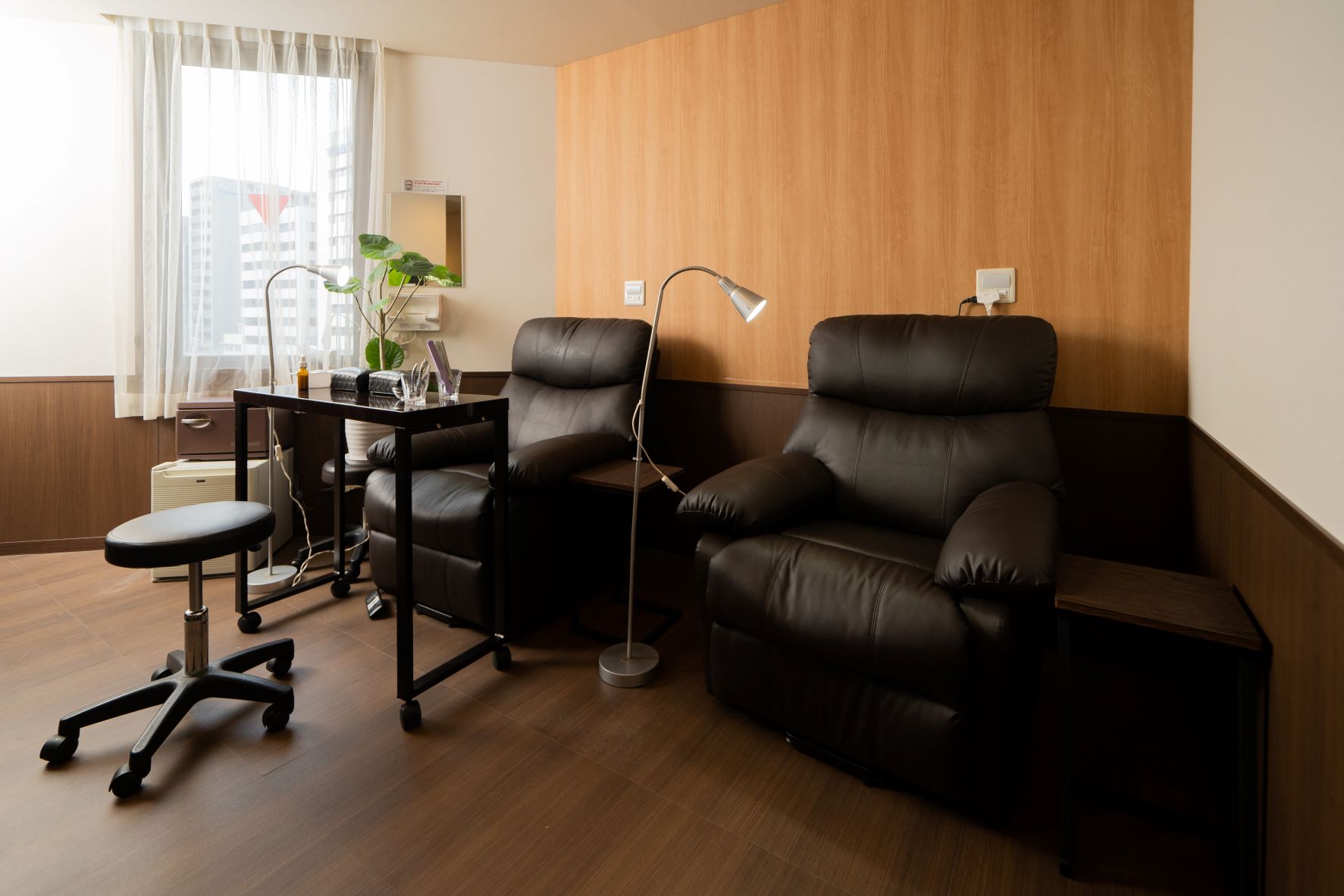当サロンでは30代~50代の男性をターゲットにしている。通常のネイルサロンでは施術中の通話や会話などは遠慮しがちだが、それぞれ独立した個室であり可能。WIFIもホテル設備のものが使える