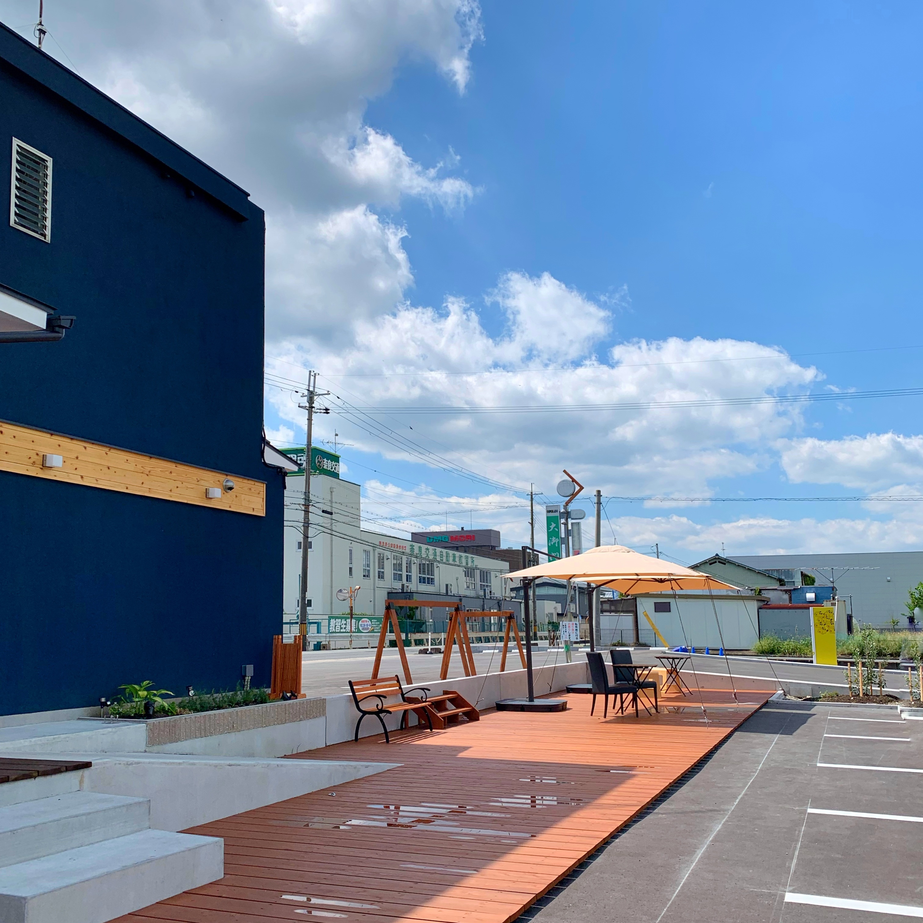 屋外では色々なイベントなどもおこなって頂けるように、店舗正面スペース・テラスを設けています。