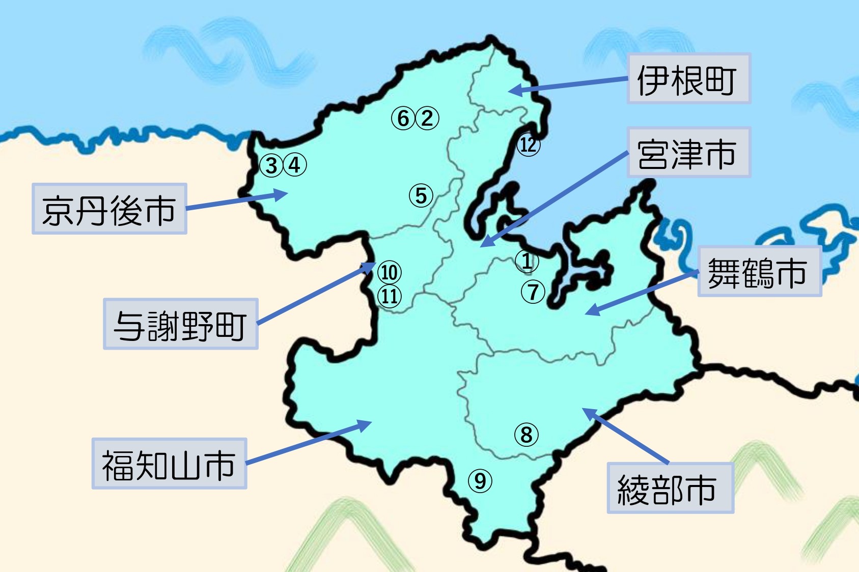 京都府および北部7市町(福知山市、舞鶴市、綾部市、宮津市、京丹後市、伊根町、与謝野町)が、観光地域づくりの推進、交流人口の拡大・定住促進及び京都府北部地域連携都市圏の取組の具体化により、京都府北部地域全体の振興に寄与することを目的に2016(平成28)年に設立した組織です。