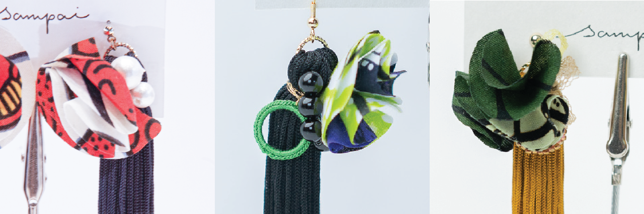 sampaiは、京都・西陣で伝統産業や服飾産業の生産過程で出るアップサイクル素材を再利用したハンドメイドアクセサリーブランドです。地域の企業に足を運び、アクセサリーの元となる素材ができるまでの話を聞き、職人の想いを知った上でそれぞれの素材を活かしてハンドメイドアクセサリーを作ります。単なるアップサイクルアクセサリーとしての地位確立を目的とせず、産業の製作・販売工程における作り手の「想い」の可視化をミッションに掲げています。アクセサリーという身近な商品の購入を通して、伝統産業・地域企業に関わる機会を創出。購入段階での作り手、事業者の想いや苦労の可視化により、商品の購入や「消費行動」について考え直すきっかけを創ります。
