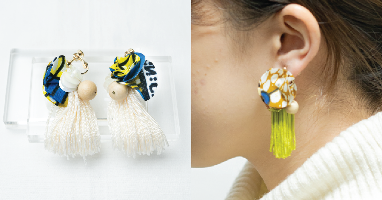 (3)プロダクトデザイナー指導のもと、アクセサリー製作 *イヤリング・ピアスはお客様ごとにお選びいただけます。タッセルと生地、装飾の組み合わせは無限大、好きな組み合わせをお選びください。