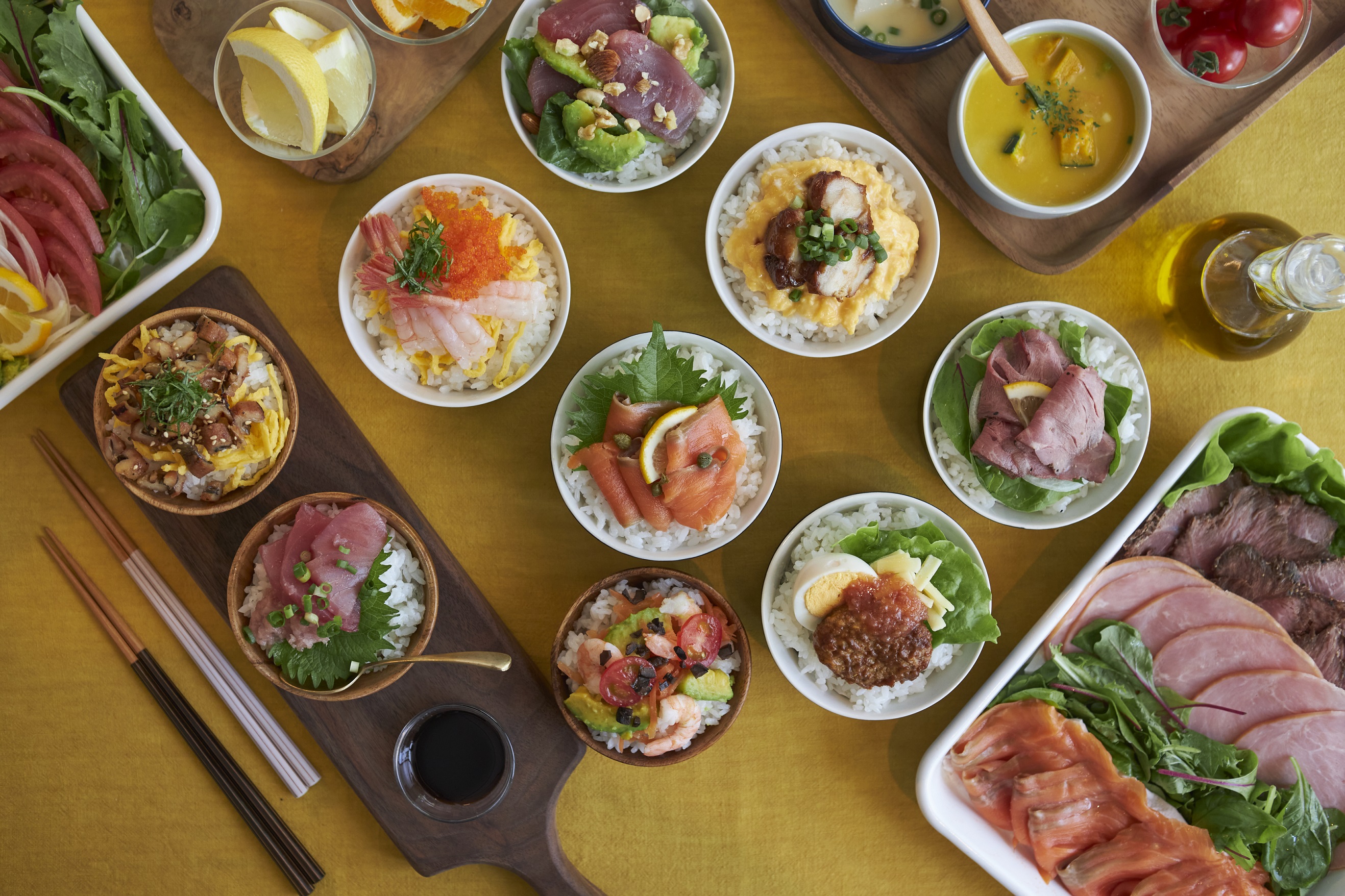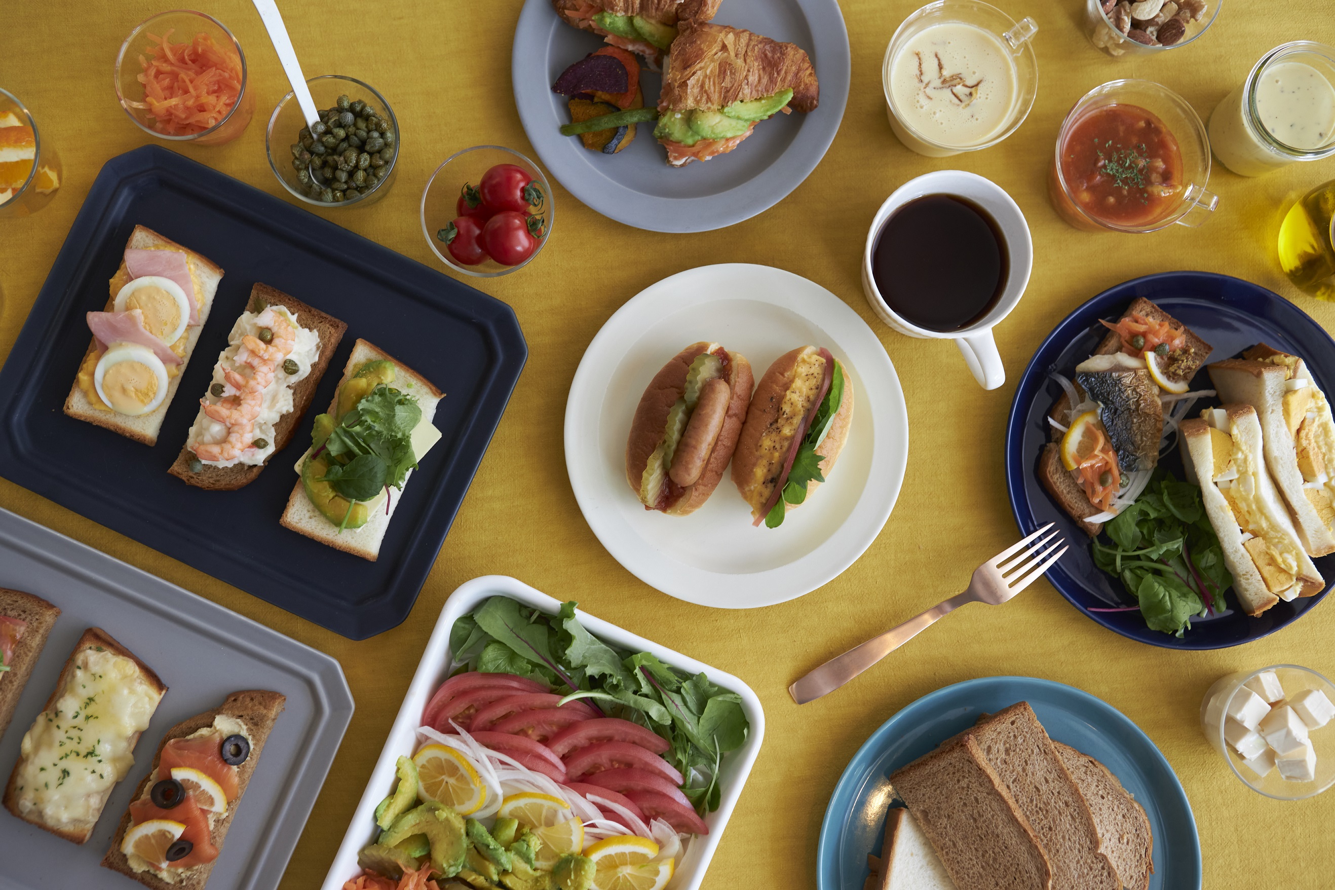 当グループのホテルでは「しあわせ朝ごはん」をテーマに、ご当地のおいしい朝食でお客様の1日を応援する各ホテルオリジナルの朝食を提供しています。ベッセルインなんばでは、「NAMBA ONE HAND モーニング」をコンセプトに、片手でも食べられ、自由でアクティブな朝ごはんをご用意いたします。 1階ラウンジの会場だけではなく、テイクアウトにも対応しているため、客室や道頓堀川沿いの遊歩道など屋外でもお召しあがりいただけます。肉や魚、野菜などお好みの具材をカスタマイズして作るサンドイッチやライスボウルに加え、大阪を代表するワンハンドフードのたこ焼き、ボールドーナッツなど80種類以上のメニューをご用意します。サーモンとチーズ、たっぷりの野菜を重ねた「スモーブロー」(デンマーク風オープンサンドイッチ)やお子様におすすめのふんわりコッペパンで作るコッペパンサンド、サラダ感覚で食べられるマグロアボカド丼、ボリューム感のあるロコモコボウルなどお客様のお好みにに合わせた朝食をお楽しみいただけます。