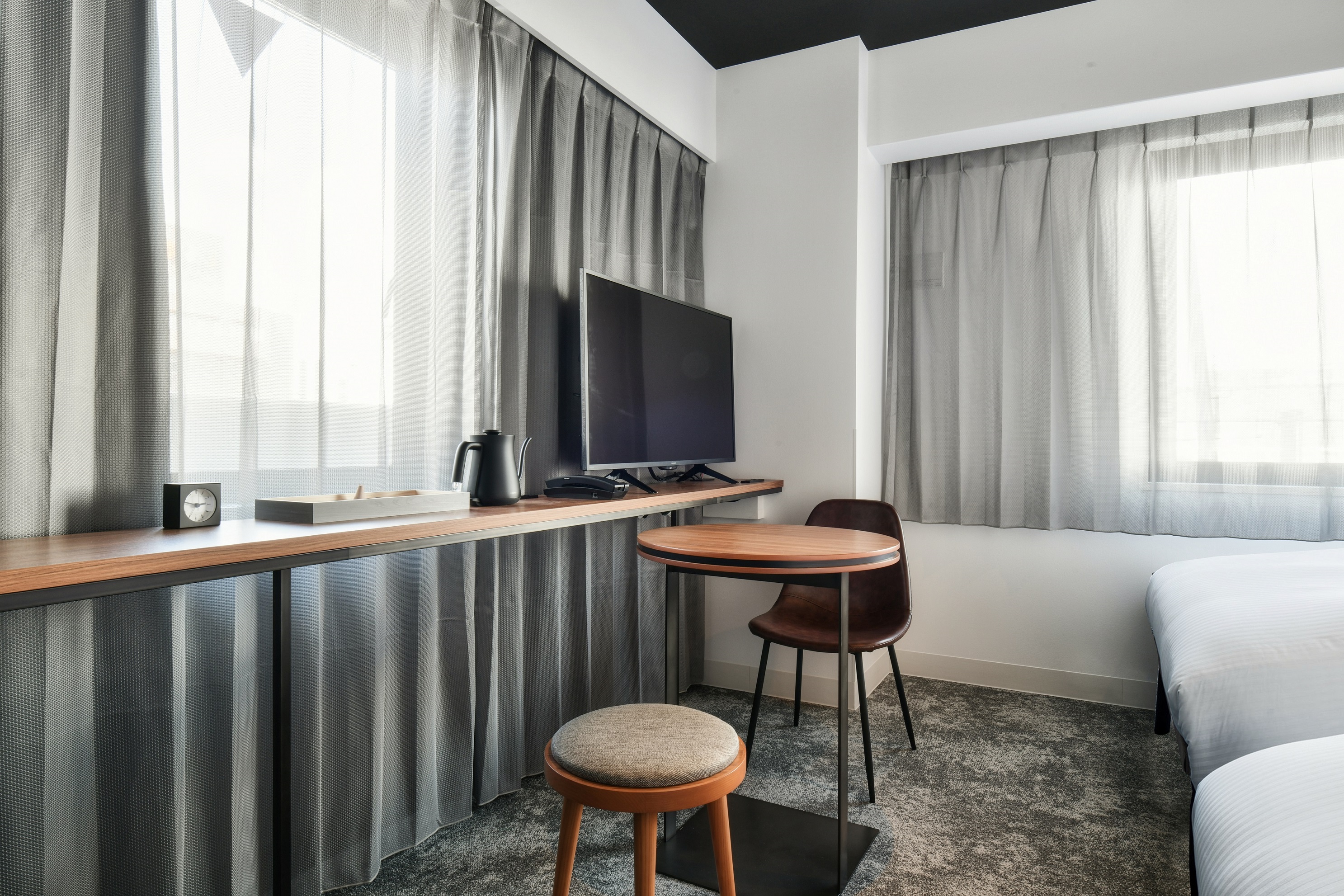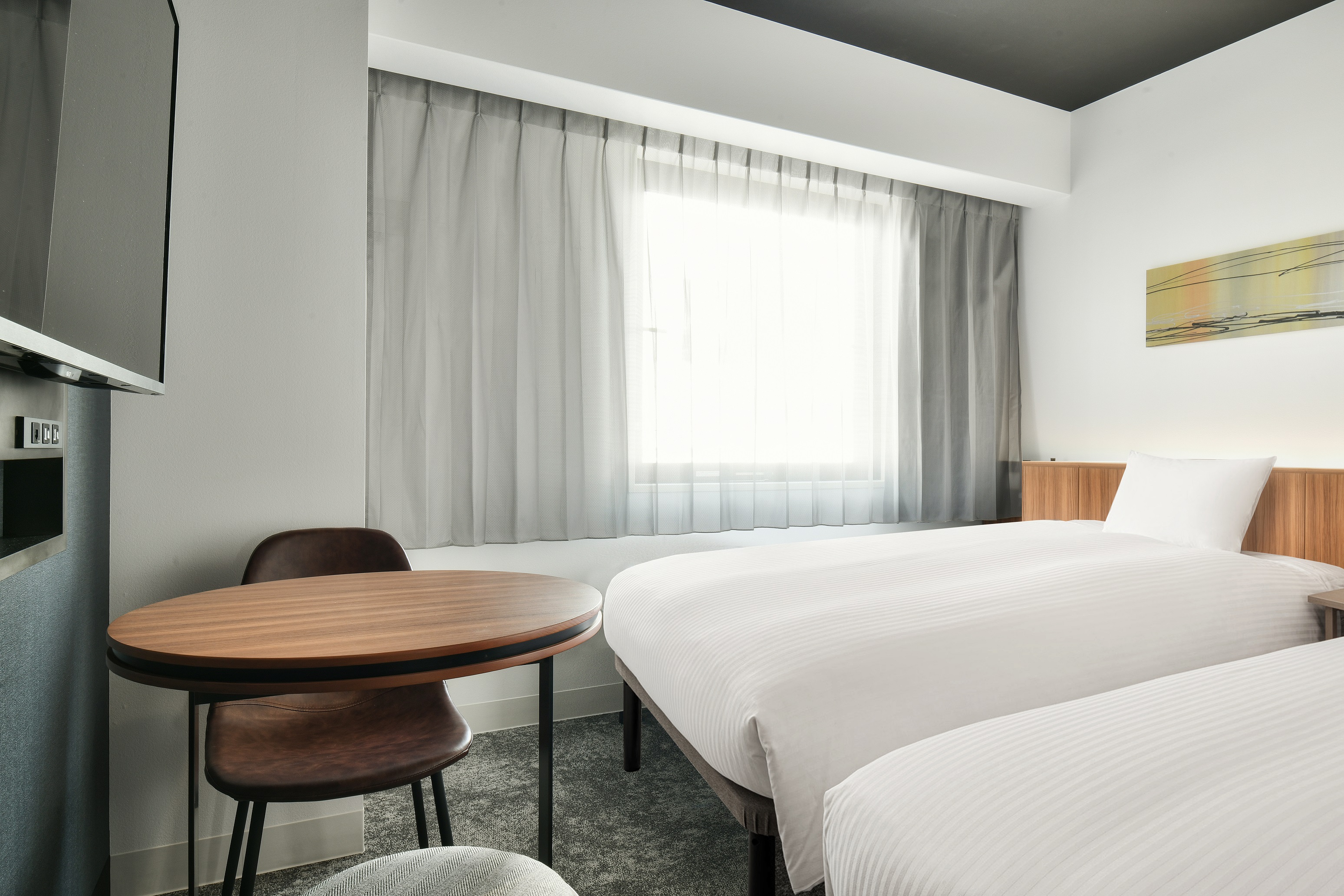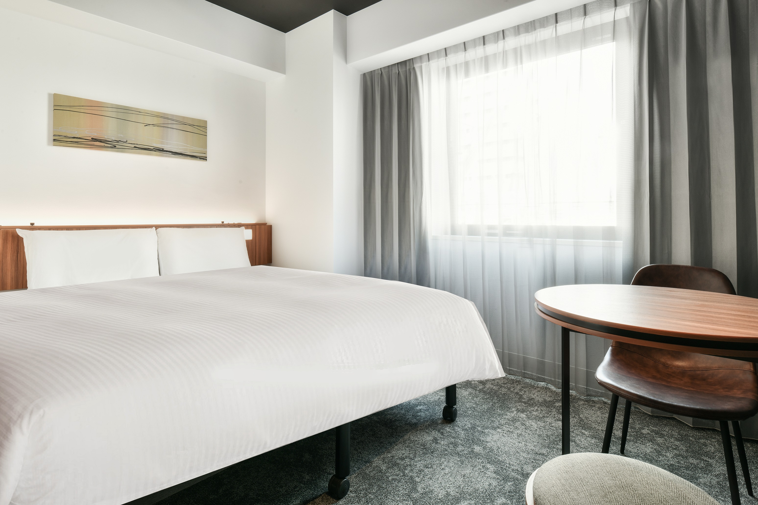 2階から14階の客室フロアには、13.7㎡~19.0㎡まで全5タイプ123室の客室を設けております。淡い色とシンプルな家具を組み合わせ、上質感と居心地の良さを感じていただける客室を提供いたします。