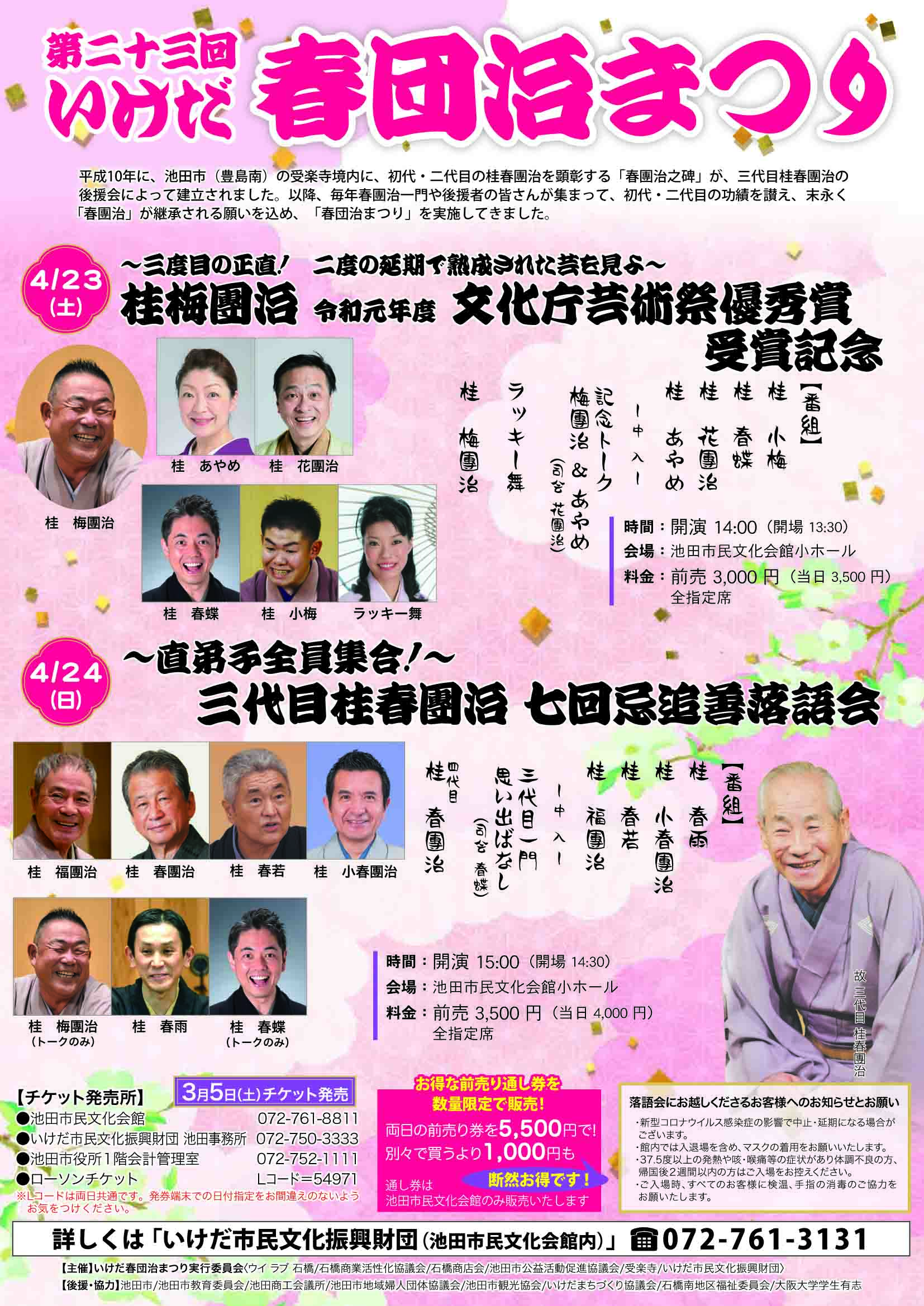 また、受楽寺での初代・二代目・三代目春團治の法要や会館に隣接する公園では一門によるトークショーや屋台・フリーマーケットを開催予定。
