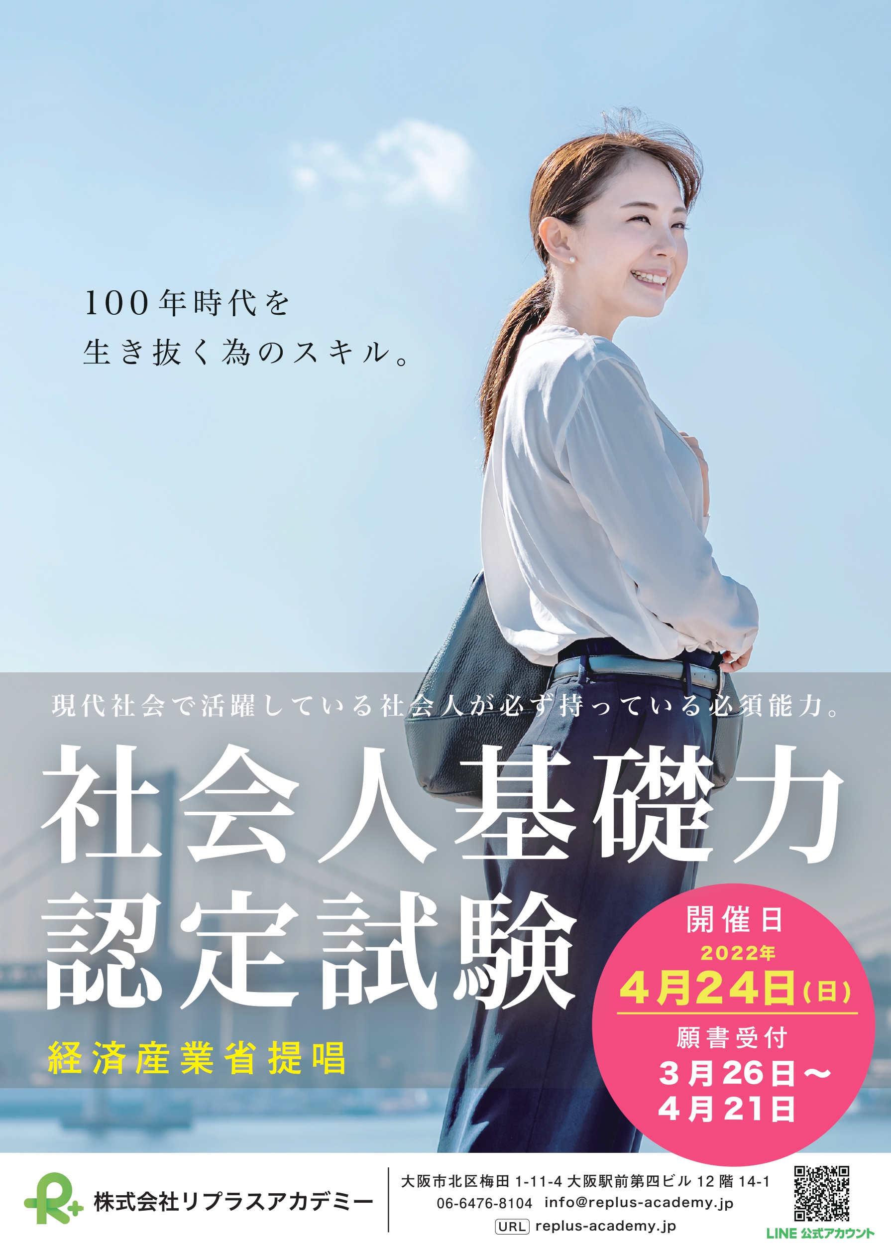 社会人のための教育機関を運営する株式会社リプラスアカデミー(住所:大阪市北区、代表取締役:熊本壮一郎、西田昌紘)は、経済産業省が提唱する「社会人基礎力」を可視化する「第1回社会人基礎力認定試験」を2022年4月24日(日)に開催し、3月26日(土)より願書受付を開始いたします。