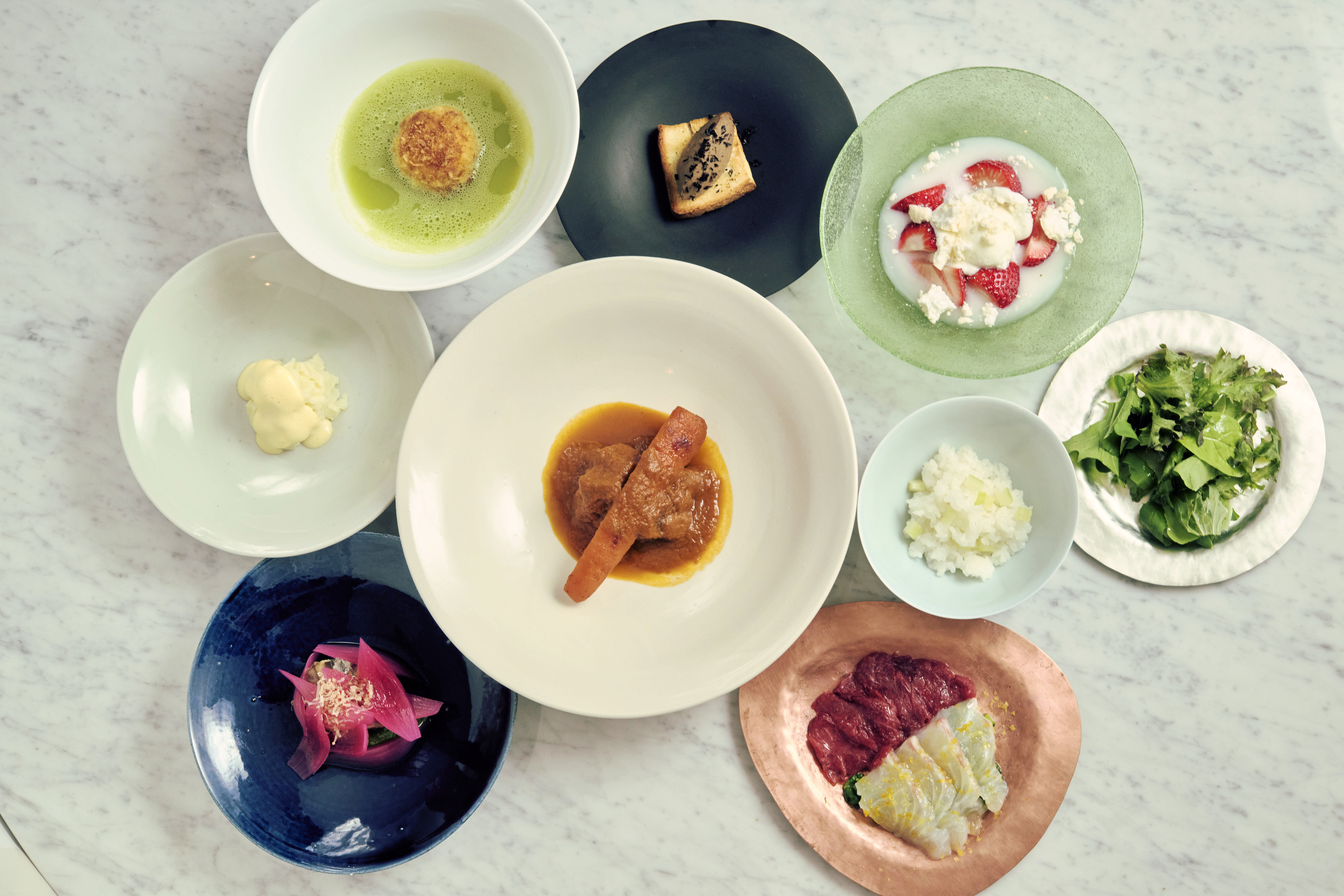 料理家・細川亜衣氏が空間デザインと料理メニューを監修したレストラン carta.。季節の食材を活かした体に優しい無国籍料理のラインアップを提供いたします。夕食はシグネチャーメニューを、朝食は洋風・和風のメニューを用意しており、前菜からデザートまでお召し上がりいただけます。