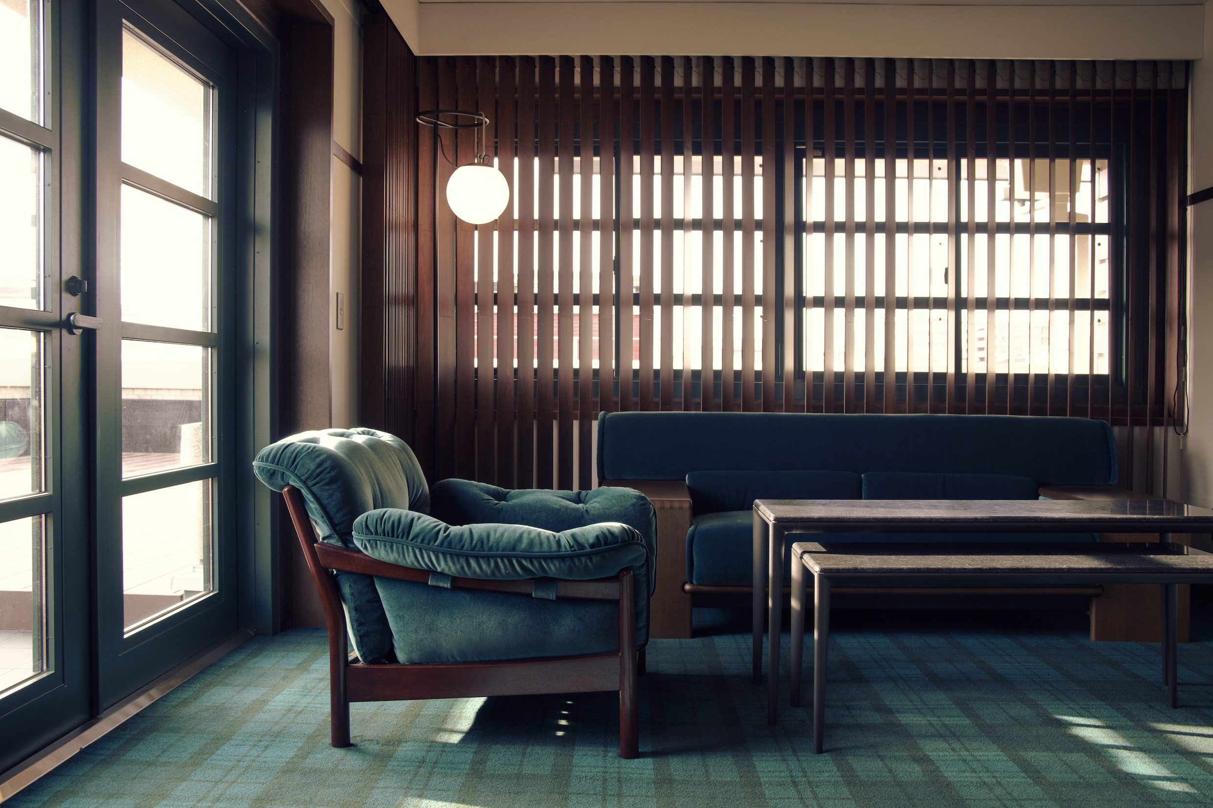 丸福樓は、1930年竣工の南北に連なる三棟のRC造の任天堂旧本社社屋(「既存棟」)と、その一部を解体修復し、さらに新しく建物を増築した「新築棟」から成り立っています。新築棟のみならず既存棟の設計監修を務めたのは、歴史ある建物を再生し、新旧が絶妙なバランスで共存する建築を数多く手掛ける世界的建築家・安藤忠雄氏。旧本社社屋の建設当時の風格を保ちつつ現代の新鮮な空気を纏ったホテル丸福樓は、外観のみならず、内装もできる限り当時の面影を感じていただけるように復元しています。