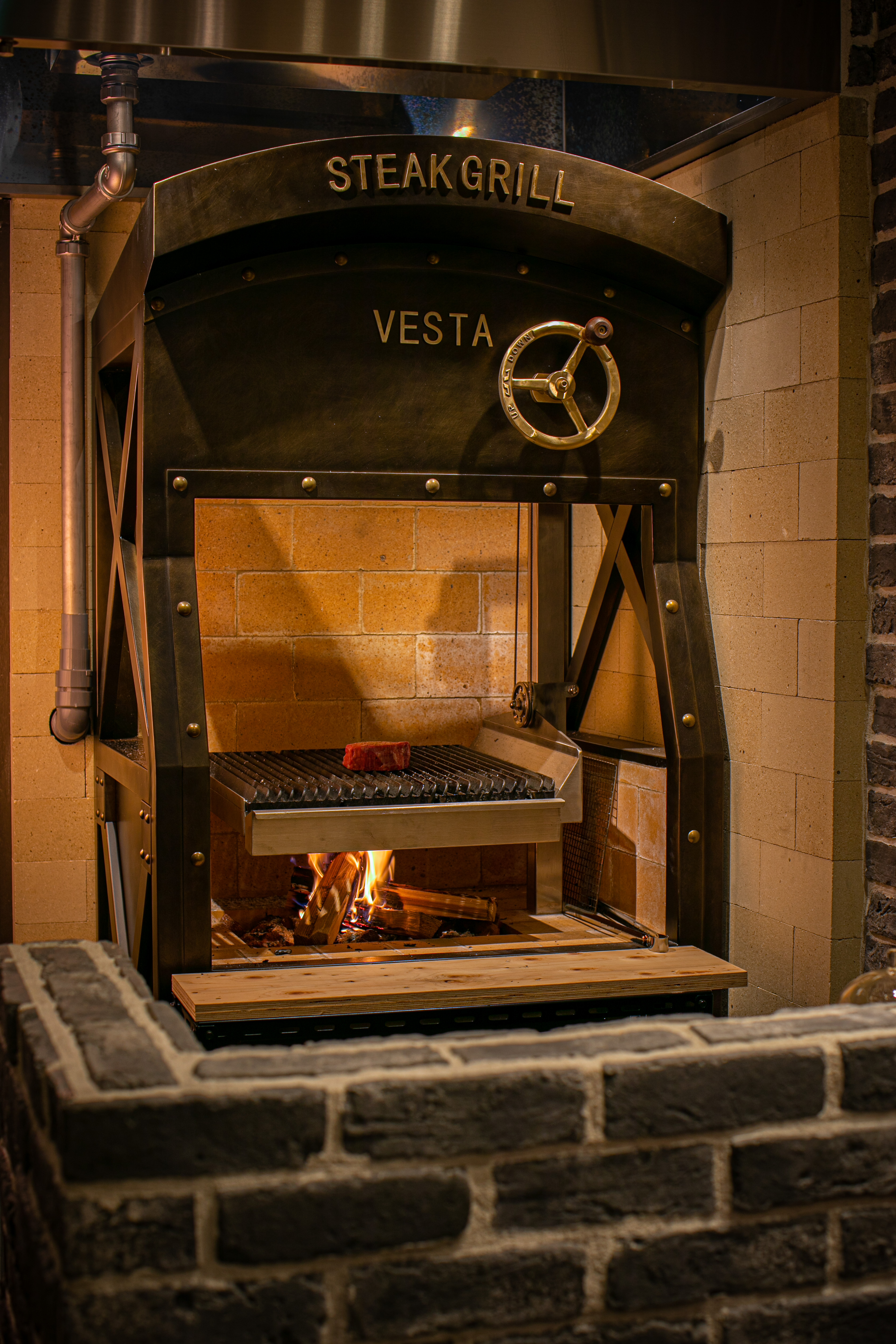 「薪火と熟成神戸牛 Vesta」は、店内で熟成させた神戸肉を薪火で焼いて提供するビストロです。店頭に設置した熟成庫では、遠赤外線によるドライエイジングでA5等級の神戸牛モモ肉や淡路鶏を約10日間熟成させ、肉の柔らかさと旨味を増やしてます。1階にある薪窯では、食材を薪火の柔らかな炎で調理することでしっとりと焼き上がり、香ばしい香りも一緒にお楽しみいただけます。店名の「Vesta」は、ローマ神話に登場する「かまどの女神」に由来し名付けました。