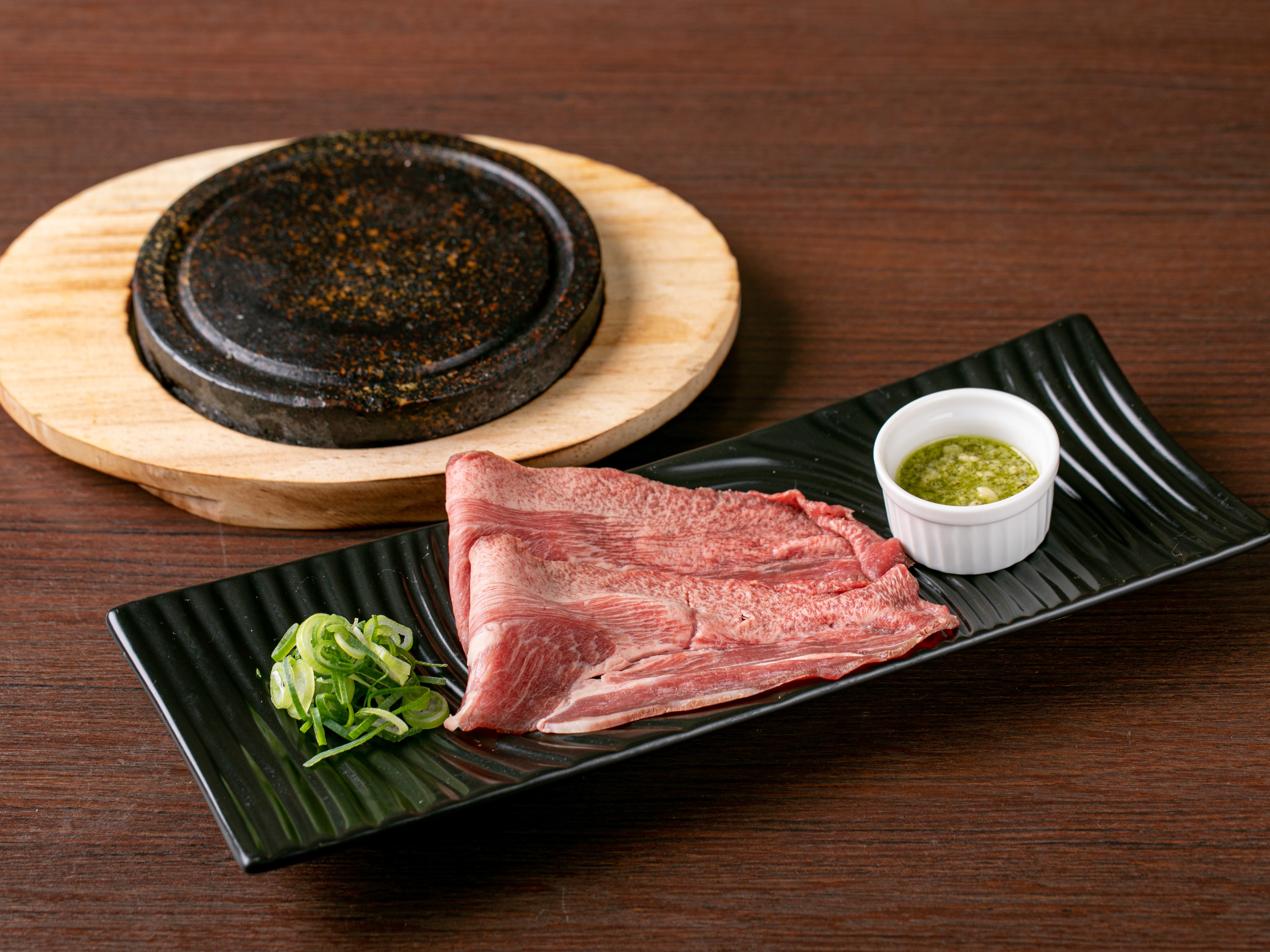・熟成大判タンの溶岩焼き ~九条ネギとグリーンソース添え~(1,480円)