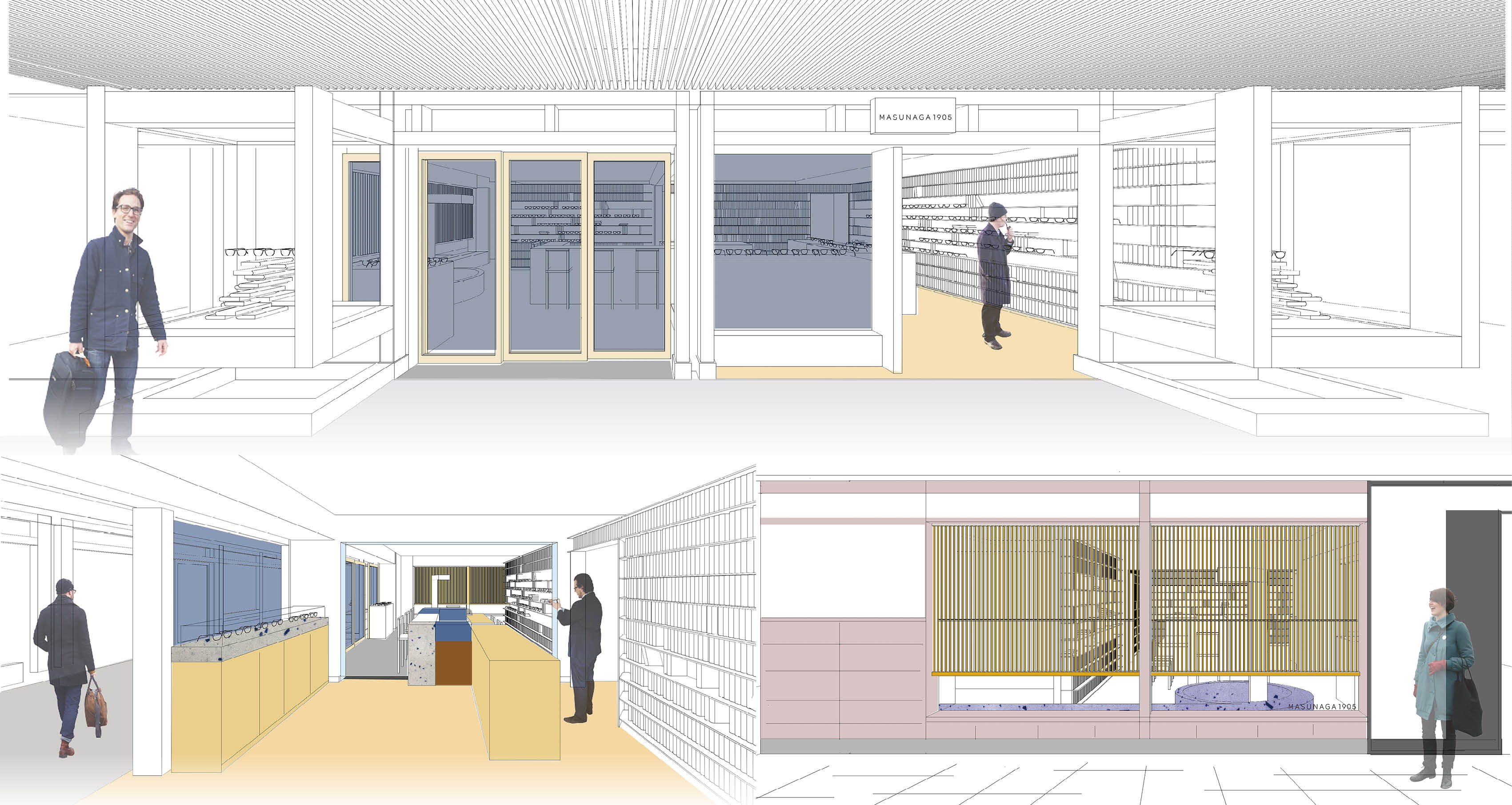 30代〜40代の男女をコアターゲットに、昭和天皇献上用として誕生した「G.M.Sシリーズ」、髙田賢三が創業したラグジュアリー・ライフスタイルブランド「K三(ケースリー)」とのコラボレーションシリーズ「MASUNAGA | K三」アイウェアコレクションなど、ハンドメイドインジャパンを守り続ける当社ラインナップから商品をセレクトし、展開いたします。今回のリニューアルでは、店舗設計を福井を拠点に活動する清水隆之氏に依頼し、「買い物が楽しい空間」をコンセプトに空間全体のデザインを一新いたしました。今後も、阪急三番街店をより一層みなさまにご満足いただけるよう努めて参ります。