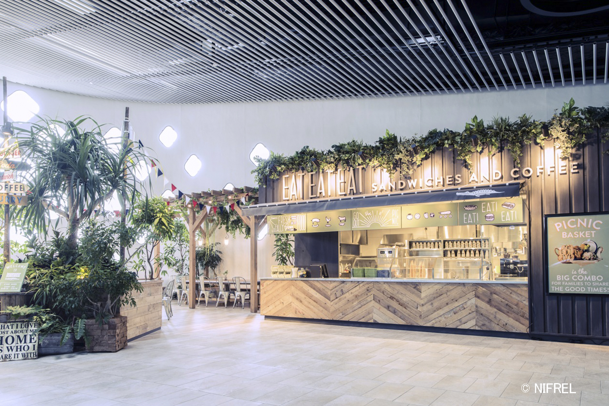 ピクニックカフェ「EAT EAT EAT」(200 平米・112 席)、ミュージアムショップ(NIFREL×NIFREL)